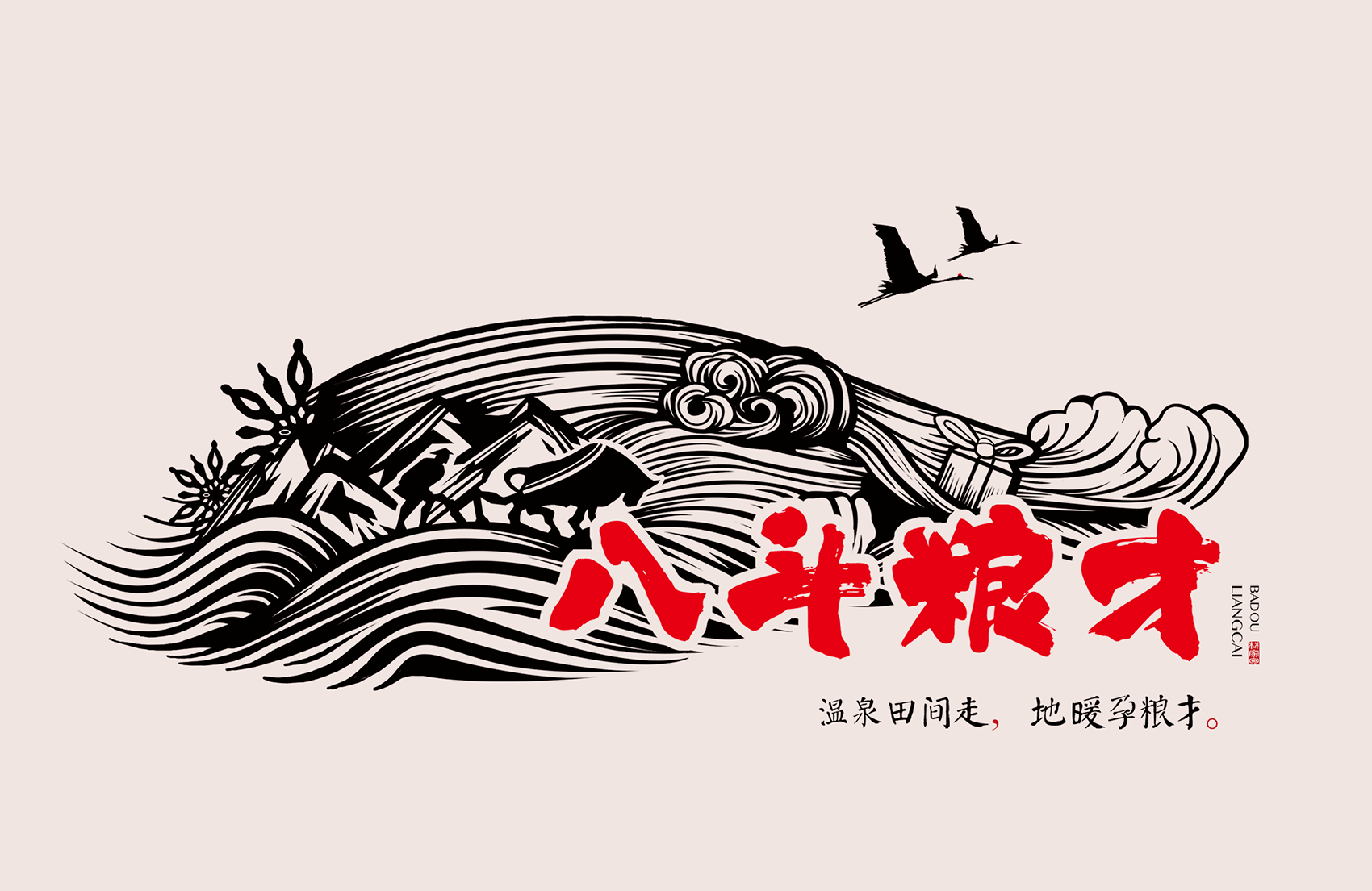 禮盒內其余八個小包裝圍繞著“溫泉田地走,地暖孕糧才”為主體,提煉出“天之寒,鶴之舞,土之才,田之暖;水之韻,耕之律,優(yōu)中選,味鮮甜”八個元素。通過提取外包裝插畫的視覺形象,沿用版畫風格形成套系之感,不斷強化品牌地緣特點。