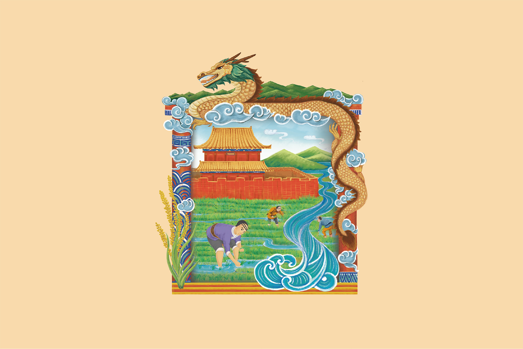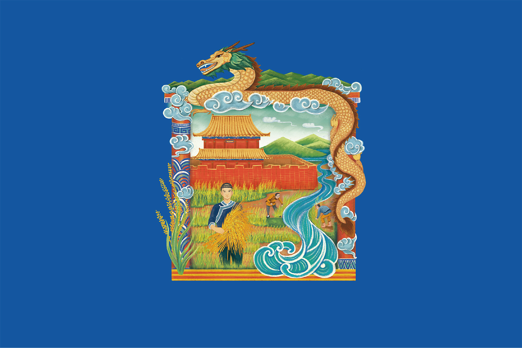 皇城與正在耕種的滿族旗人通過川流不息的淶流河水一脈相承,源遠流長的是不斷辛勤耕種的正統品質,鮮活的色彩與豐富的意象讓人不斷產生聯想,將品質感與故事性通過易于理解的方式傳遞給消費者。