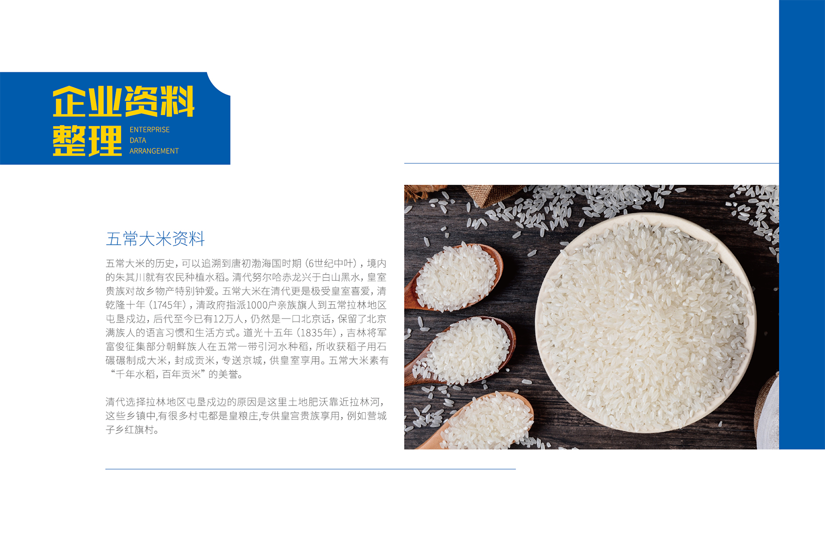 黑龍江省五常市淶晟水稻種植聯合社成立于2018年,是由五常市營城子滿族鄉十五家農民合作社成立的水稻種植聯社,是集水稻種植、生產、加工、倉儲、銷售于一體的農業合作單位,在五常市營城子滿族鄉有機產品種植協會的指導下,使用生態有機種植方式產出有機稻米。五常市是東北稻米的核心產區,五常大米作為獨立的品類市場發展處于成熟階段,在置身于紅海的皇糧根兒五常大米想要打開市場局面,獨特的品牌文化與地域特點是企業攻克市場最有力的武器。
