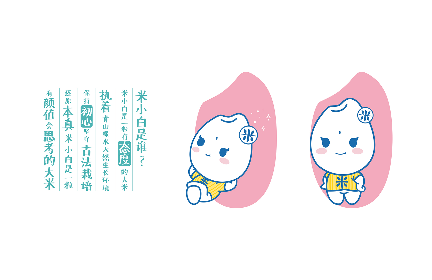 卡通化IP形象能夠有效的幫助與建立品牌印象,兼具親和力、易傳播等優(yōu)勢(shì),此外動(dòng)漫亞文化的流行,卡通化IP越來越受到年輕群體的喜愛,而針對(duì)消費(fèi)群體是年輕人的米小白從品牌內(nèi)核到產(chǎn)品屬性都非常符合IP化策略,所以繽策將米小白進(jìn)行了IP擬人化的處理,塑造出兼具品質(zhì)與顏值的米粒。