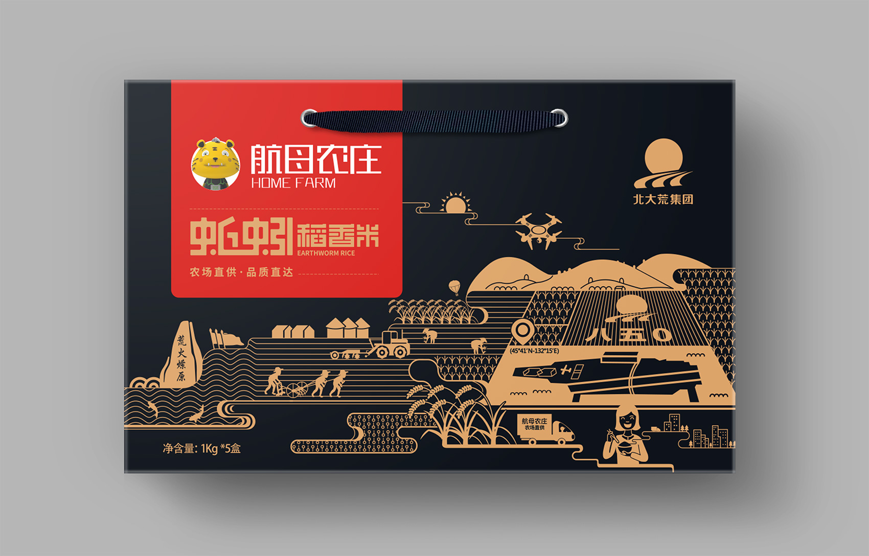 超級品牌源于超級創意,而超級創意就是一個深入人心的超級符號。所以品牌要么始于符號,要么成為符號,通常兩者都是。繽策團隊在與企業座談中了解到有關八五零農場的軍墾歷史,以及產品本身的特點——使用蚯蚓有機肥進行灌溉培育,在得天獨厚的自然條件與有機肥料的雙重作用下,自然讓蚯蚓米擁有更好的品質,在繽策團隊的頭腦風暴下,將八五零農場的自然面貌與當地地標性建筑相互融合,使用扁平化插畫將品牌核心價值——農場直供,以視覺化策方式呈現出來,簡約流暢,豐而不亂,同時也向消費者傳遞出從種植到收割,從加工到運輸的全過程。