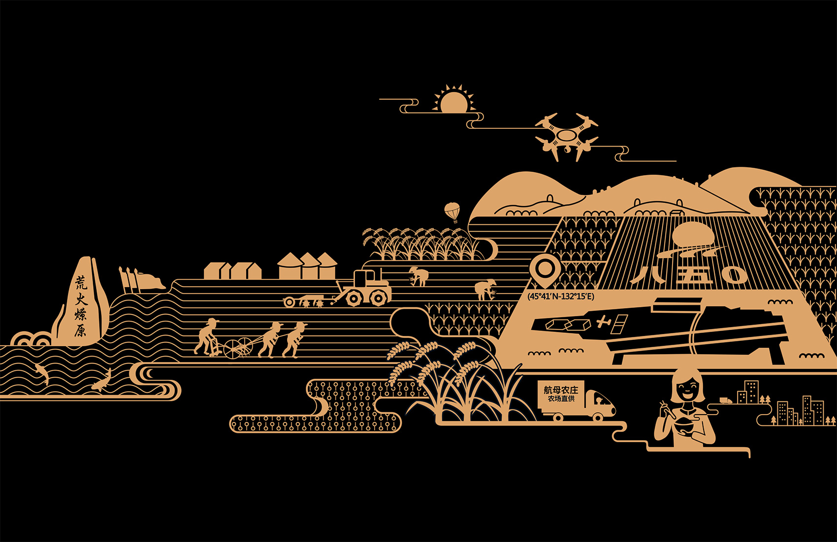 哈爾濱農墾北大荒創新創業管理有限公司成立于2016年,隸屬黑龍江北大荒農墾集團旗下的電商孵化基地,創建并注冊航母農莊品牌,航母農莊品牌始于2018年9月25日,中共中央委員會總書記習近平視察北大荒七星農場,強調了“努力建設現代農業大基地、大企業、大產業,農墾系統打造現代農業航母。”的“三大一航母”新時代農墾精神。航母農莊由哈爾濱農墾北大荒創新創業管理有限公司打造運營。 旗下擁有大米、石磨面粉等多條產品線,采用訂制式農場直供模式經營,運用AI、大數據、云計算、區塊鏈等信息化技術,將農業與互聯網相結合,集種、管、收、儲、加、銷為一體,使得農產品從農場直接送到消費者手中,減少中間商環節,確保新鮮,保證品質,實現農場與消費之間的雙贏。
