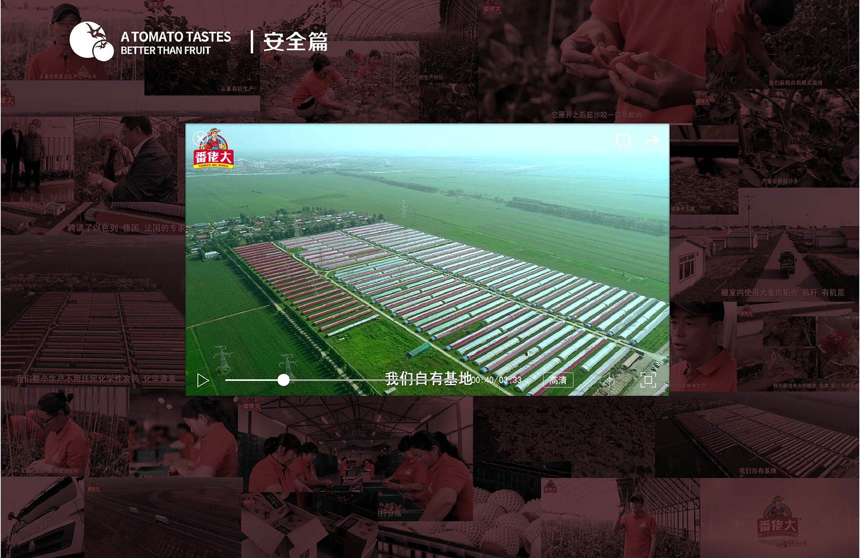 在生產流程篇中,繽策采用了紀錄片的風格,如實的記錄了番佬大從育苗、培育、種植、采摘、挑選、裝箱、運輸的流程,全程由番佬大的總農藝師進行講解,將番佬大生態種植的細節毫無遺漏的展現在消費者面前,不僅讓消費者知曉手中的美味番茄是怎么得來的,更能消費者知道為什么番佬大又如此美妙的味道,有效的提升品牌溢價空間,有理有據的讓消費者更加信賴品牌。