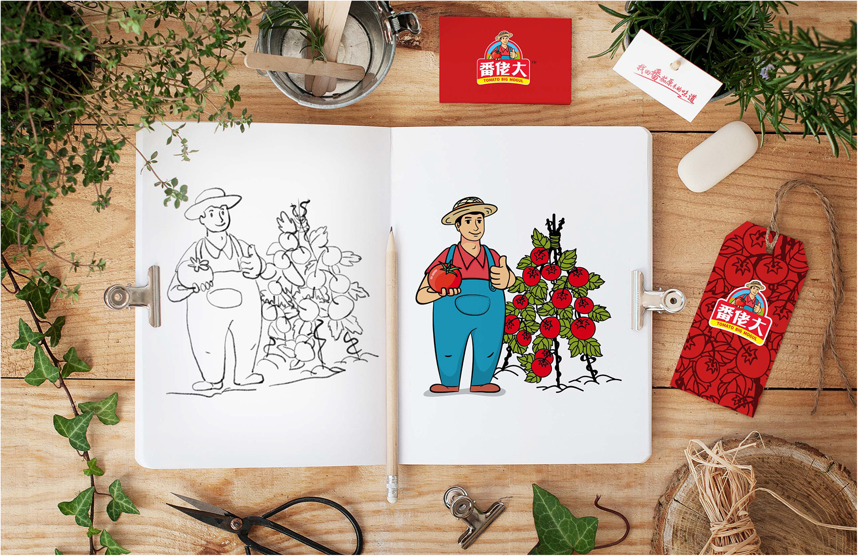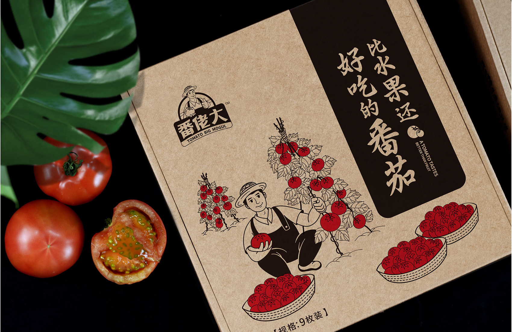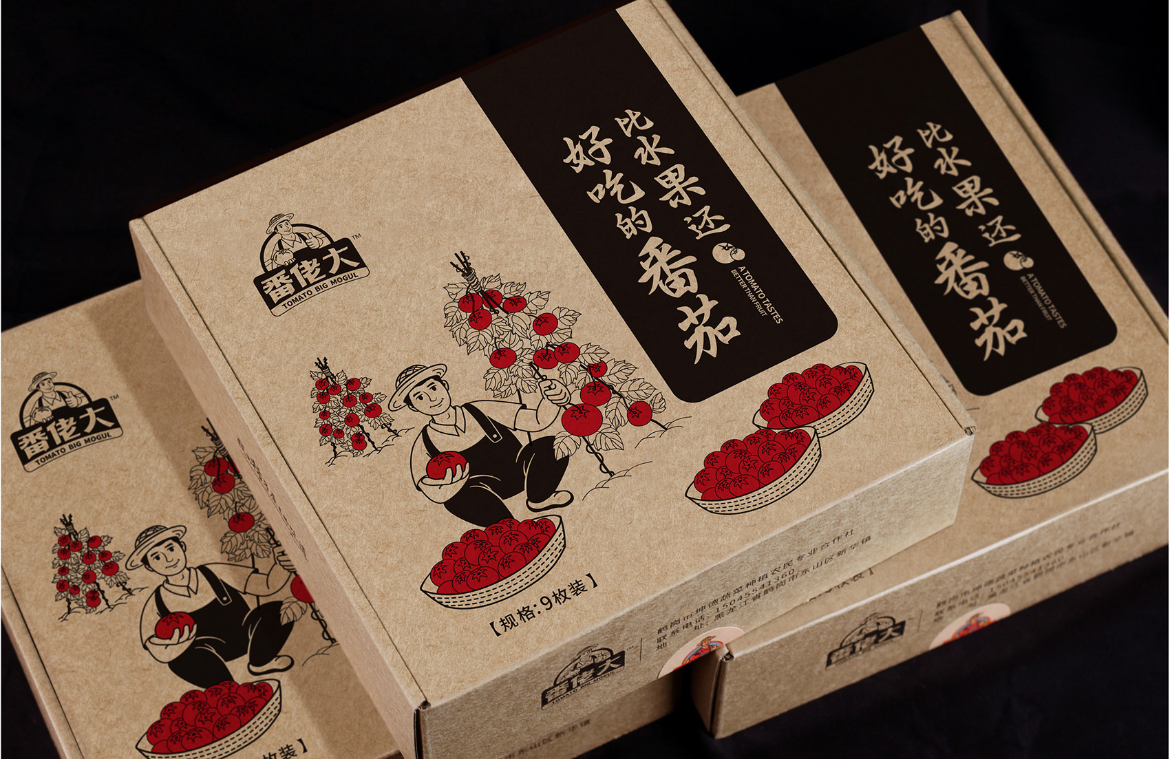 越來越多的案例告訴我們,那些擁有生命力的成功品牌大多數都擁有一個成熟穩定的IP形象,能將消費者的購買行為與品牌及IP所營造的故事連接在一起,讓品牌更具有人格化魅力,同時能夠快速拉近與消費者的距離,繽策原創設計出一個憨厚質樸的番茄農人形象來構建品牌IP,頭頂遮陽的草帽,身著背帶褲與紅T恤,面帶自豪的微笑,一手捧著紅艷艷的番茄,一手豎起大拇指,似乎在告訴消費者經過綠色種植、統一管理的品質番茄歡迎每一個人品嘗,將番佬大這三個字生動形象的表現出來,在終端應用中醒目惹眼,具有極強的親和力,并讓消費者能夠快速記憶。