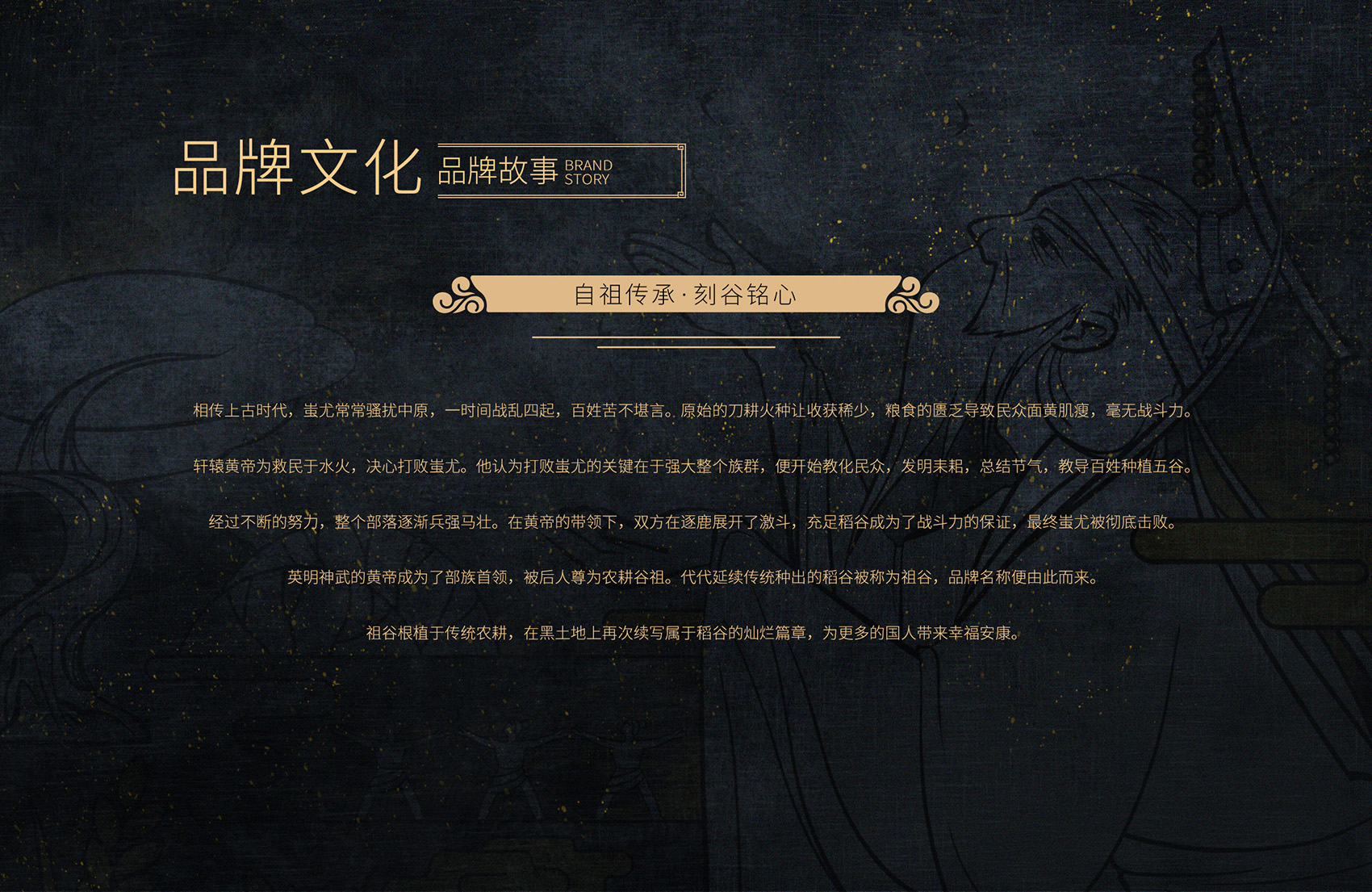 消費升級的大背景下,消費主體的更迭以及傳播基礎設施的完善,讓傳播速度史無前例的加快,消費者的審美的提高與對于產品附加值帶來的精神意義愈加看重,零散的、不具備系統性的品牌無法承載更高的發展目標,會嚴重阻礙品牌持續發展。在同質化的市場競爭中,品牌的調性與文化是讓消費者在浩如煙海的競品中記住辨識品牌最有效的途徑,通過大量市場調研,多輪頭腦風暴的研討,繽策從品牌名稱祖谷入手,以文化母體中傳統農耕文明的超級符號——軒轅皇帝融入品牌,結合品牌16年間堅守質量,誠信至上的內核,提煉出傳承本真自然谷物的定位,構筑品牌專屬IP,以多樣化的包裝風格,喚起消費者的認同感;將具有深厚歷史性的農耕文明融入其中打造獨有的專屬品牌文化,圍繞傳承農耕文明,傳遞自然谷粒為核心,并將品牌的體系融會貫通植入垂直化落入包裝之中,全方位構筑品牌。