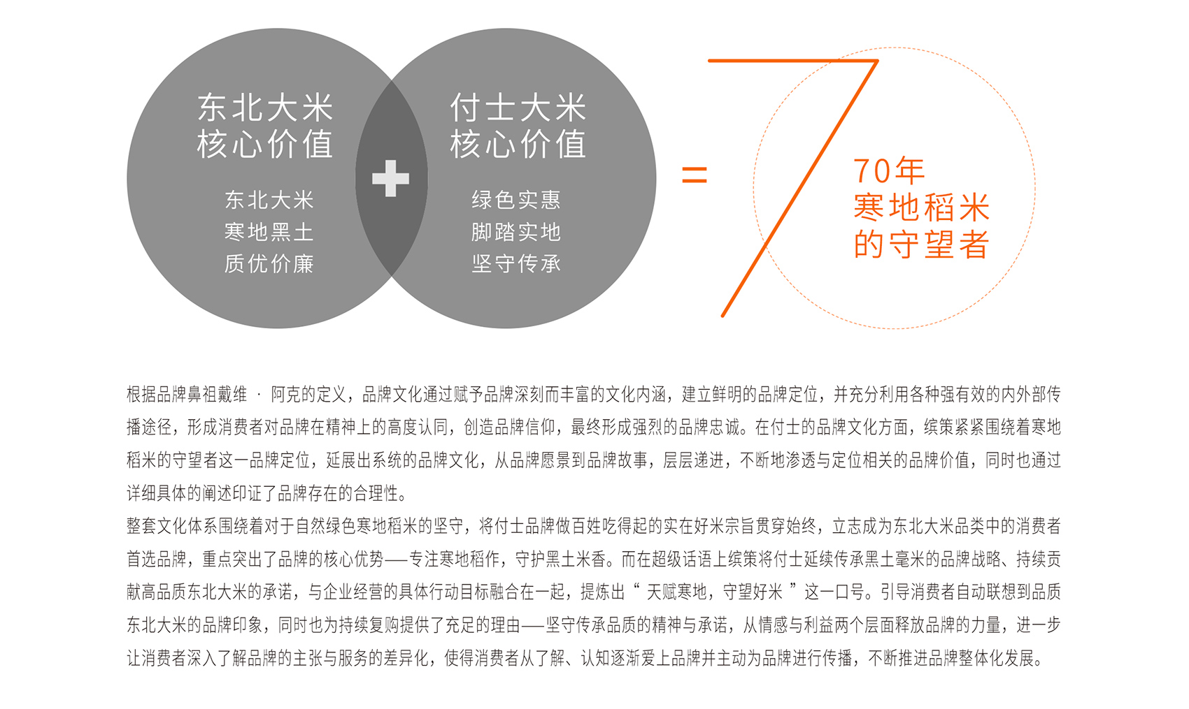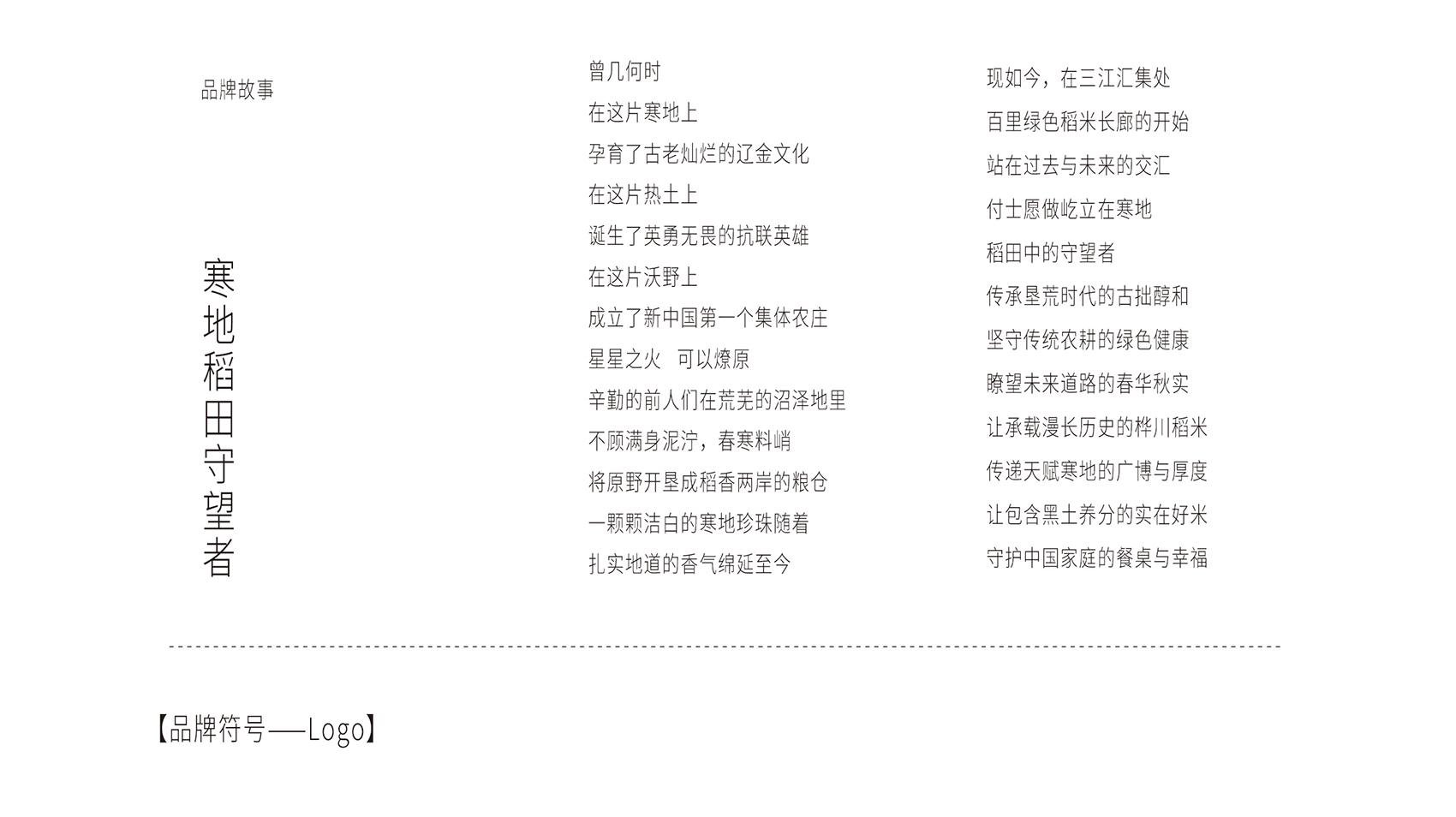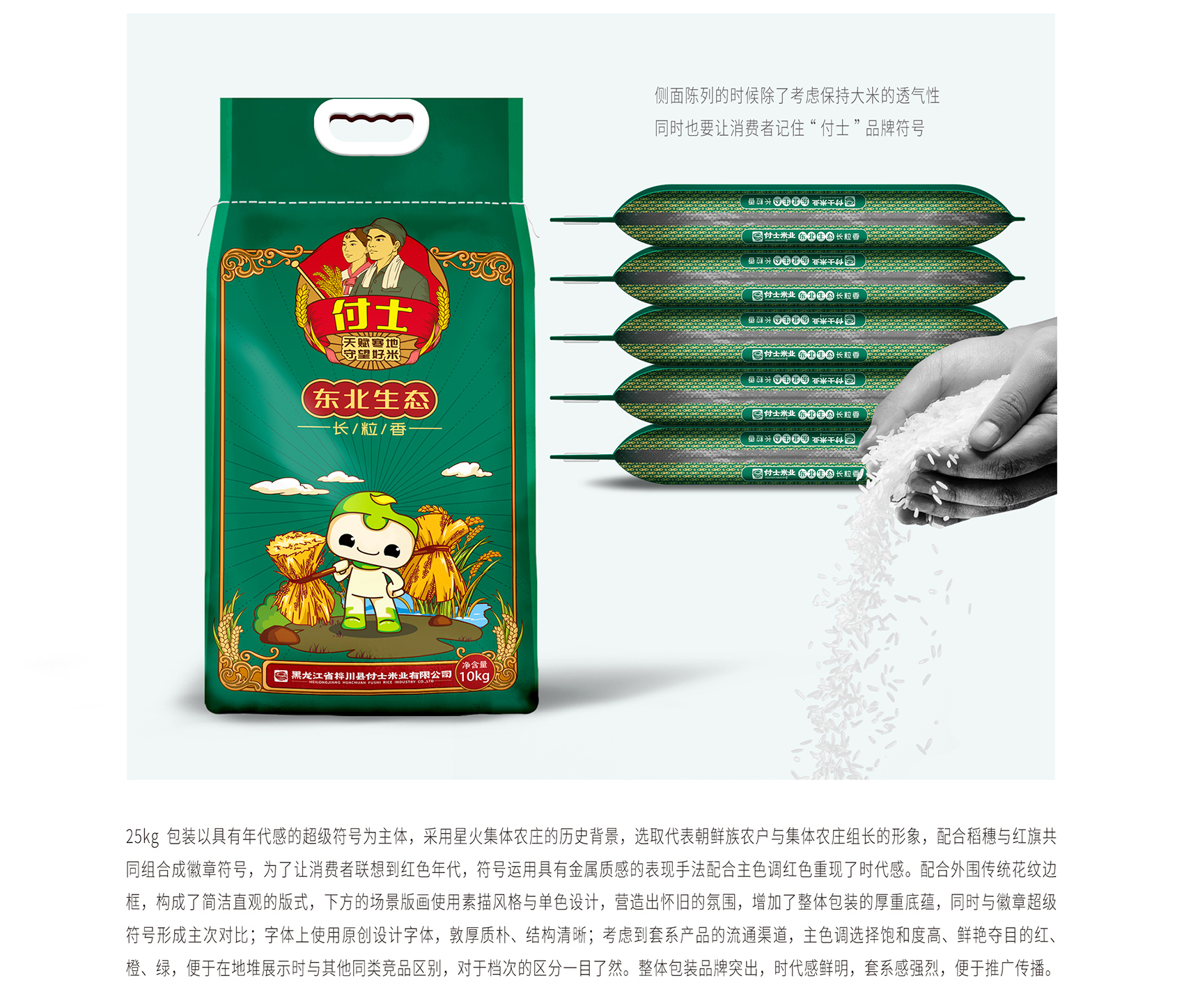 廣闊而復(fù)雜的市場(chǎng)必然產(chǎn)生最為激烈的競(jìng)爭(zhēng),這一點(diǎn)在剛需品上更為明顯,想要在商戰(zhàn)中勝出最根本的就是減低成本,提高利潤(rùn),所有的企業(yè)戰(zhàn)略、品牌定位、品牌設(shè)計(jì)、包裝設(shè)計(jì)、廣告創(chuàng)意等等都是圍繞這個(gè)核心來進(jìn)行的,所有的力量只有擰成一股繩,才能突破封鎖,這就是“所有事都是一件事”的背后原理。經(jīng)過實(shí)地考察調(diào)研和多次與企業(yè)深入座談,繽策發(fā)現(xiàn)企業(yè)擁有足夠長(zhǎng)久的歷史和當(dāng)?shù)爻錆M傳奇色彩的集體農(nóng)莊,都是企業(yè)所擁有的品牌資源,需要做的只是將這些材料去粗取精,重新整合變成消費(fèi)者能夠理解并且喜愛的形式一一落地。繽策從樺川本地水稻種植歷史切入,提煉出“寒地稻米的守望者”這一品牌核心定位,總結(jié)歸納出高緯寒地良心好米的專屬品牌文化,并以此打造出品牌專屬IP,系統(tǒng)化落入包裝及物料中,幫助品牌實(shí)現(xiàn)從戰(zhàn)略到落地全面執(zhí)行。