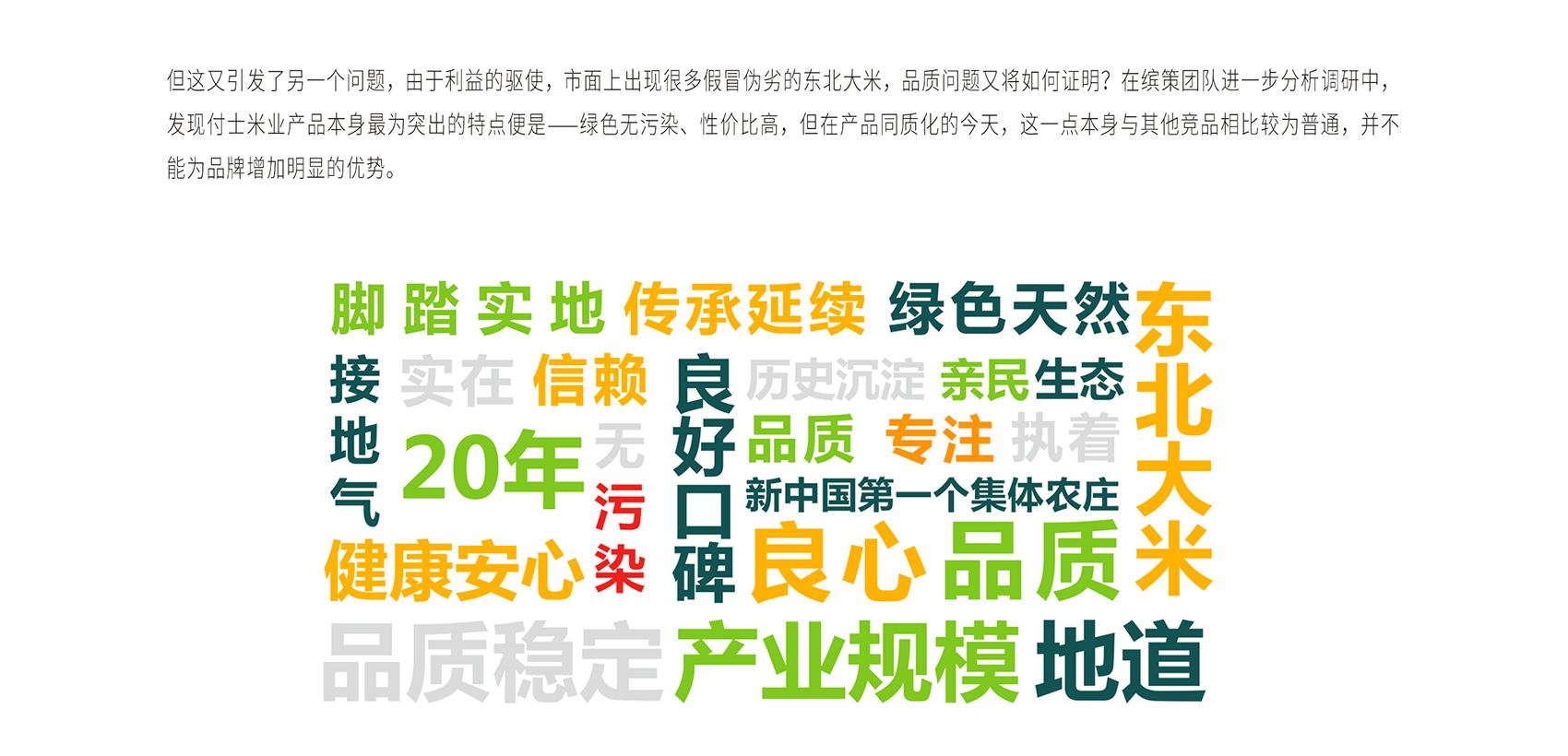 在萬事皆變的時(shí)代,消費(fèi)群體逐漸更迭,品牌的重要性越發(fā)的突出。品牌體系不完善的老牌企業(yè)無法獲取消費(fèi)者的青睞。擁有20年歷史的付士米業(yè)也面臨著這樣的困境,在長(zhǎng)期深耕中,付士米業(yè)以優(yōu)質(zhì)的寒地東北大米贏得了深圳、成都等南方經(jīng)銷商的認(rèn)可,但在線上及商超賣場(chǎng)中卻始終不被消費(fèi)者認(rèn)知,嚴(yán)重阻礙付士米業(yè)的發(fā)展,在這個(gè)信息爆炸的時(shí)代,怎樣通過品牌發(fā)聲,怎樣更高效率更有效的讓消費(fèi)者注意到付士,進(jìn)而選擇喜愛付士?這些問題成了企業(yè)的必須面對(duì)、不可回避卻又亟待解決的關(guān)鍵,企業(yè)尋找繽策希望從頭開始幫助付士仔細(xì)梳理,搭建完整的品牌體系。