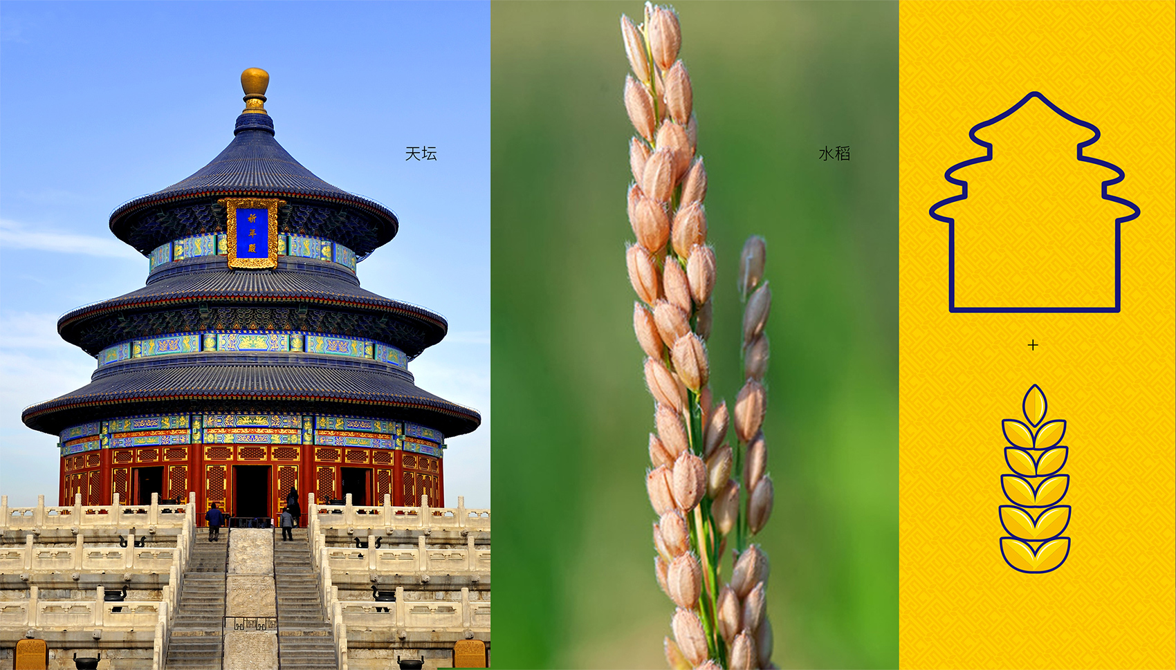 在品牌塑造的過(guò)程中,產(chǎn)品是即使,品牌是產(chǎn)品延續(xù)的保證。對(duì)企業(yè)來(lái)說(shuō),要?jiǎng)?chuàng)建一個(gè)強(qiáng)有力的核心資產(chǎn),就必須在產(chǎn)品之上構(gòu)架一個(gè)有說(shuō)服力的、含有故事性的符號(hào),并讓目標(biāo)消費(fèi)群體能夠理解記憶的方式進(jìn)行落地,在認(rèn)知中構(gòu)建品牌信念,從而建立品牌知名度與消費(fèi)者忠誠(chéng)度。繽策根據(jù)目標(biāo)消費(fèi)人群的特點(diǎn)選取了印章這一超級(jí)符號(hào)為品牌打造logo,并融入傳統(tǒng)紋章樣式傳遞出品牌對(duì)于品質(zhì)的承諾;在包裝符號(hào)上延續(xù)標(biāo)志厚重大氣的調(diào)性,以中國(guó)傳統(tǒng)標(biāo)志性建筑天壇作為主體,加入稻種、山水紋樣進(jìn)行品牌專屬性改造,借用符號(hào)本身的權(quán)威性與辨識(shí)度進(jìn)一步獲取消費(fèi)者的信任,同時(shí)也傳遞出品牌將為創(chuàng)造出五谷豐登、國(guó)泰民安的美好未來(lái)而努力奮斗。