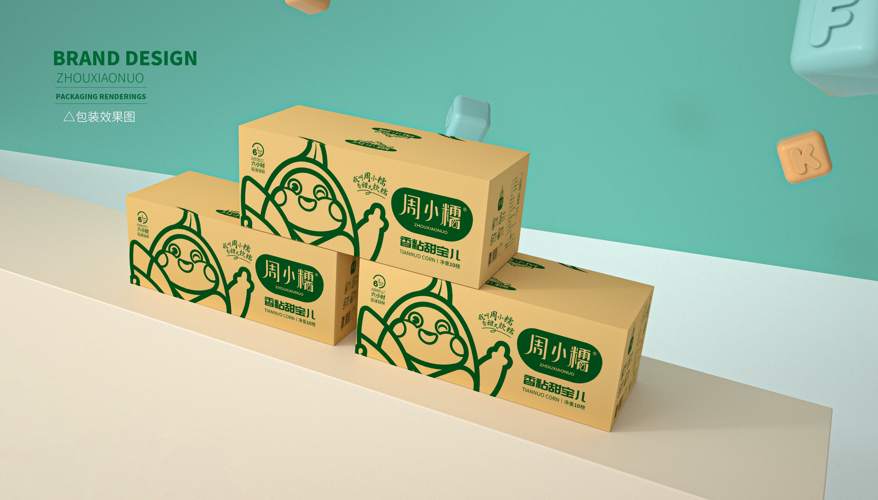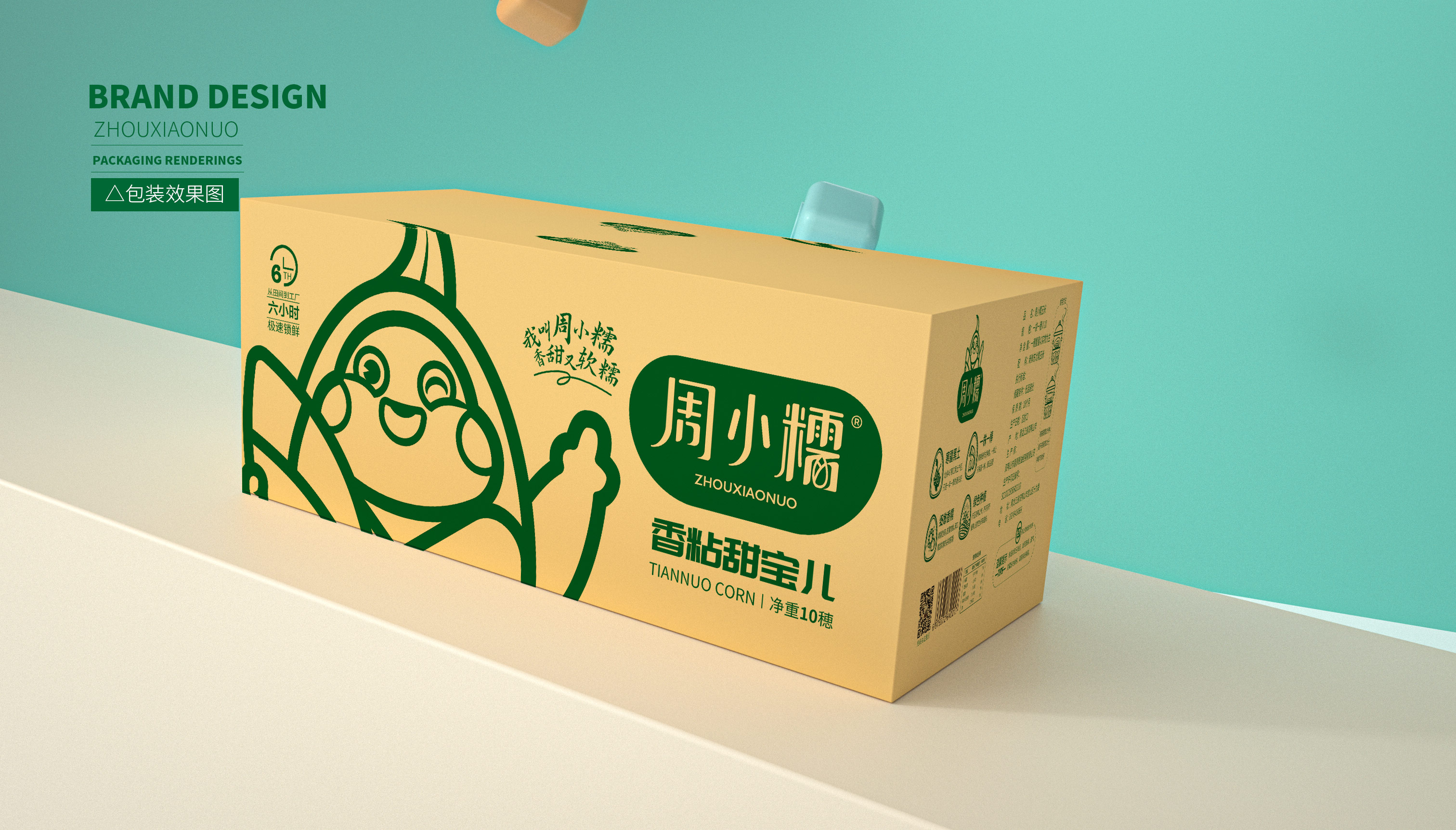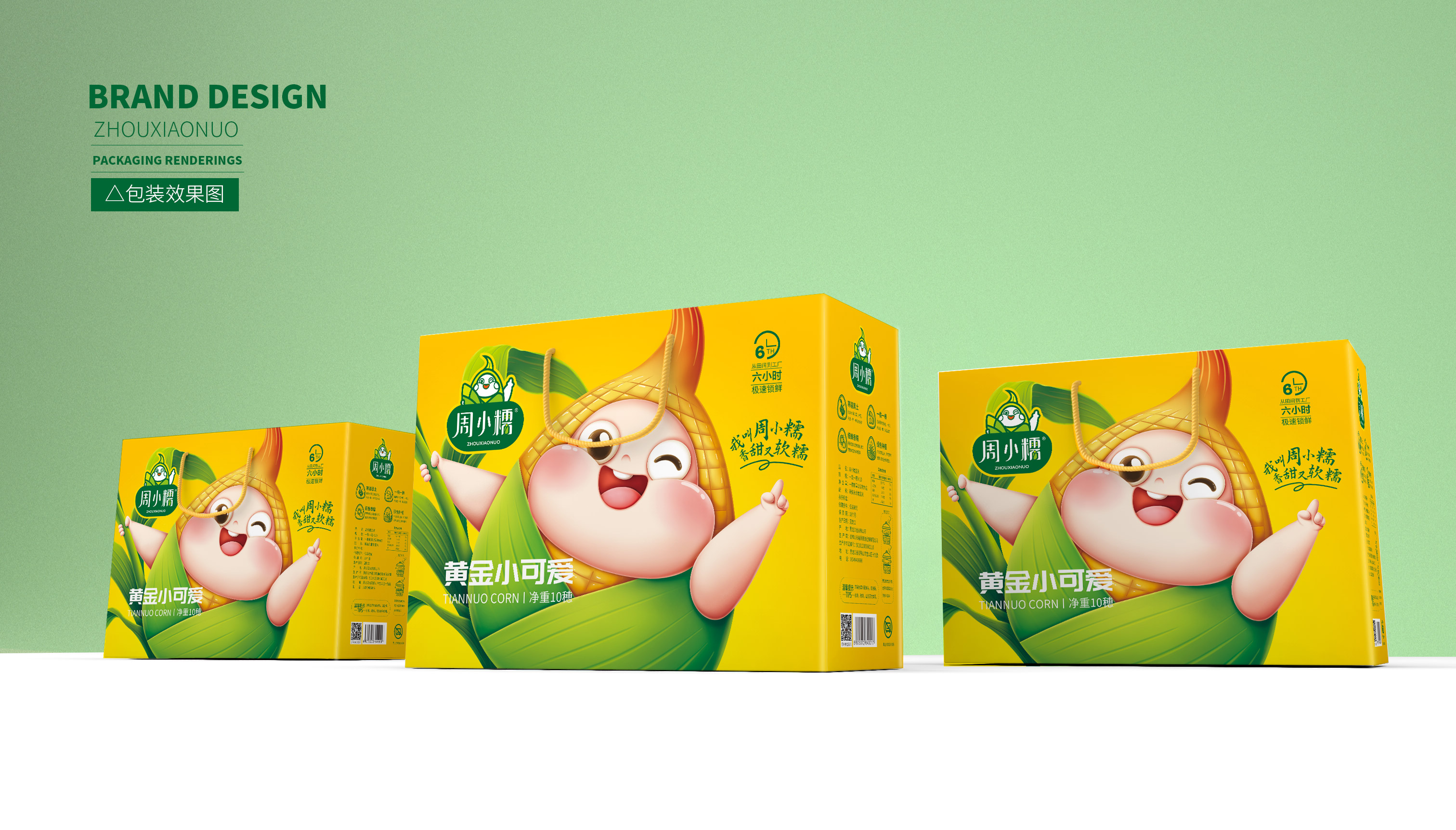 作為一個從零起步的新興品牌,周小糯僅僅注冊了品牌商標,在面對發展成熟、競爭激烈的鮮食玉米市場,品牌需要從頭構筑,企業希望繽策能為其打造品牌基礎的logo、IP與包裝。