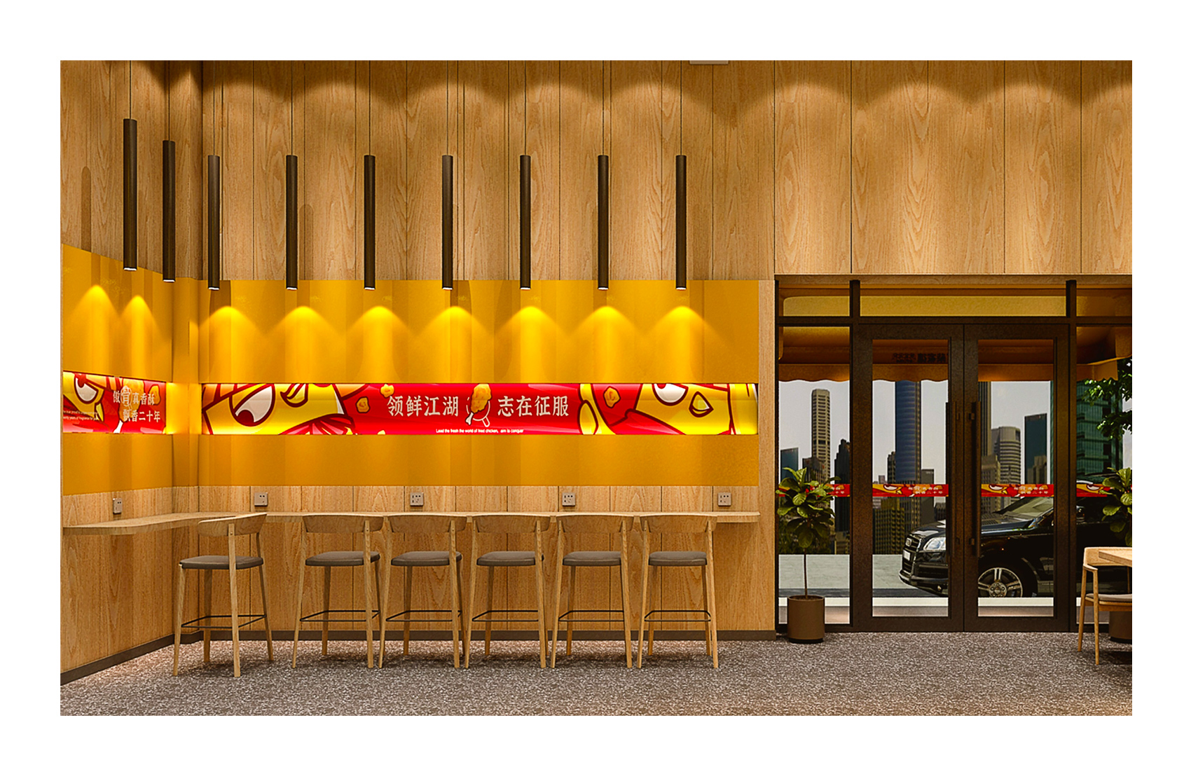 品牌所屬品類為小吃類,其中與其他競品的區別是產品帶有骨頭,這一點讓其目標客群被天然劃分即擁有大量空閑時間,牙口好的年輕群體,這些千禧一代從小就生活在互聯網之中,個性鮮明、注重體驗,偏好娛樂與社交的話題,對亞文化如動漫、游戲興趣更大,反映在消費觀之上,體現在更加注重品牌的趣味性,所以對于小吃的選擇不僅僅局限在產品本身的口味,更多的是是否能夠新潮時髦,方便打卡,從這一點入手繽策將品牌的所屬品類作為突破口,以時下受消費者喜愛的IP形象打造品牌形象并以此為延展,垂直化落入產品包裝與店面空間之中,讓品牌已完整的體系展現在消費者面前,目前品牌總部已裝修完成,店面進入運營階段。