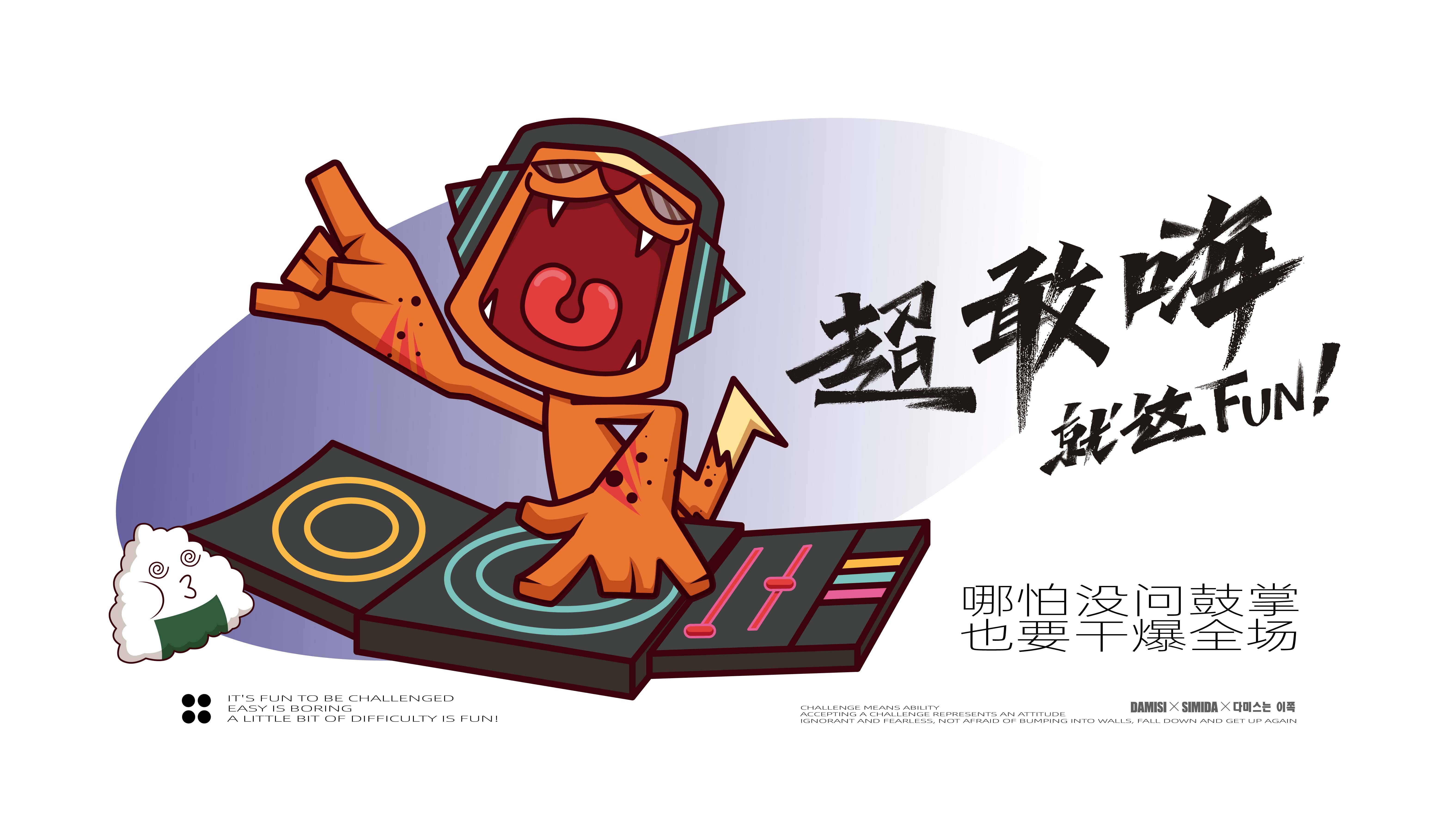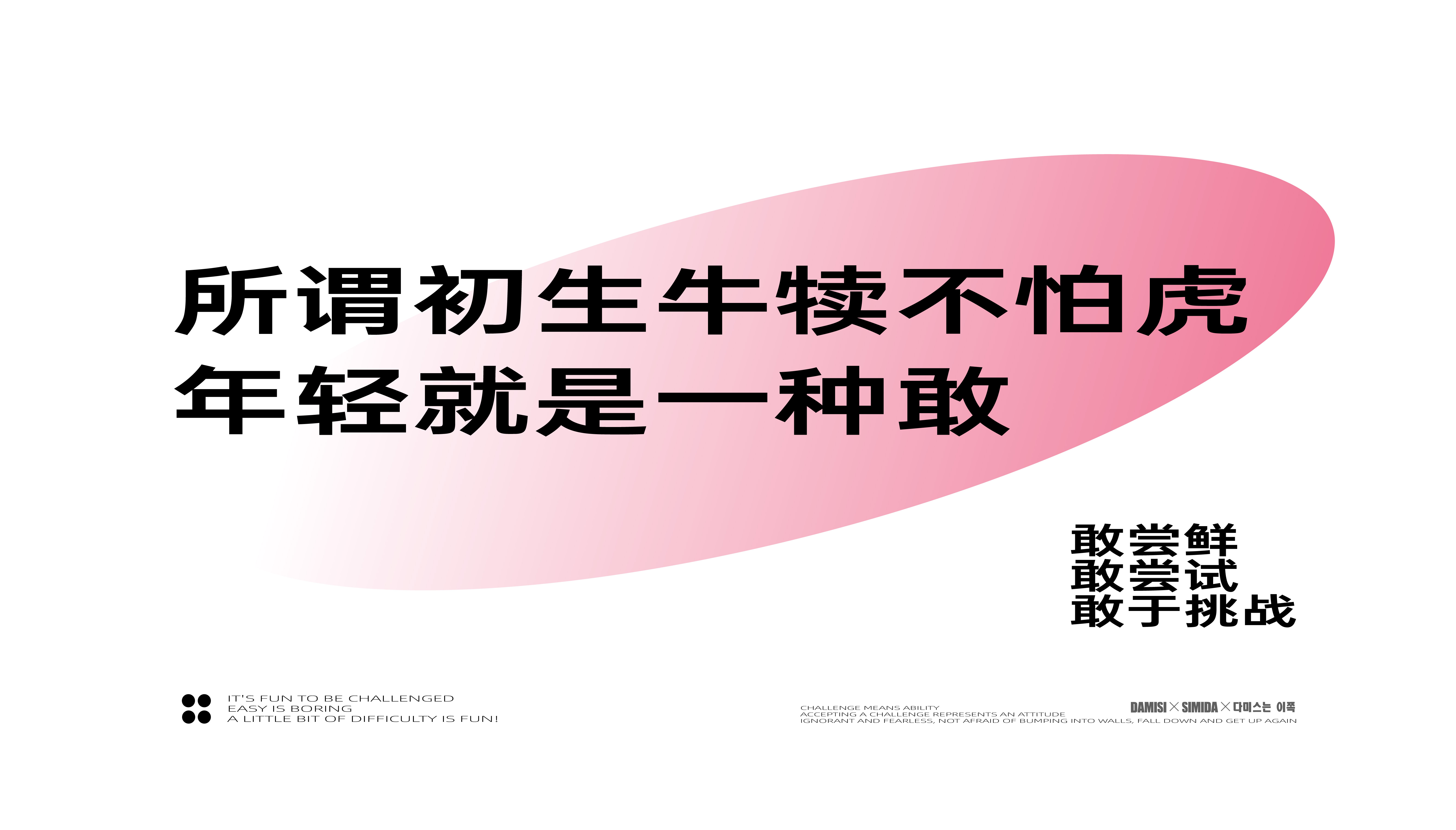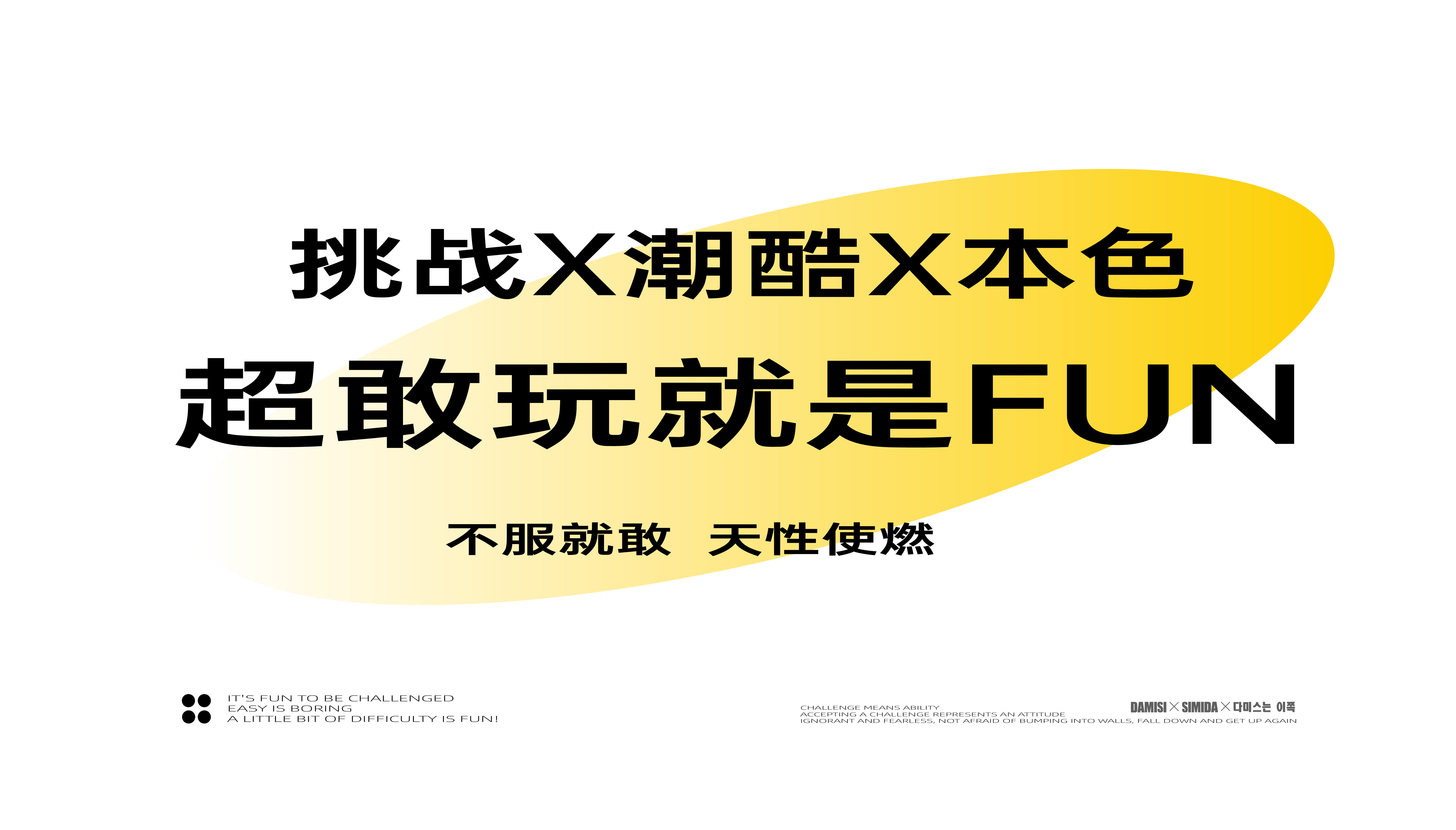 品牌的最總目的就是讓產(chǎn)品或服務(wù)自己在消費者心中有力量、有溫度,將大眾轉(zhuǎn)化為品牌的忠實信徒,除了產(chǎn)品過硬以外,品牌內(nèi)核能否引發(fā)共鳴和認(rèn)同才是關(guān)鍵,面向年輕群體尤為如此。所以達(dá)米斯的品牌精神核心就要激發(fā)年輕人的認(rèn)同感,當(dāng)下95-00后年輕群體是互聯(lián)網(wǎng)的原住民,他們樂于嘗試、敢于表達(dá),尤其是對于自我標(biāo)簽和態(tài)度上尤為熱衷,取悅自我、展現(xiàn)個性是他們永恒的話題,通過產(chǎn)品出發(fā),繽策將品牌核心定位于FUN,關(guān)聯(lián)主產(chǎn)品的同時,也包含熱愛、態(tài)度與樂趣的多重含義,將充滿反叛意味的鮮明風(fēng)格融入其中,結(jié)合受年輕人喜愛的IP形象共同打造品牌時尚、潮酷的調(diào)性,青春洋溢、無拘無束的搖滾豹張牙舞爪演繹著達(dá)米斯無所無懼的姿態(tài),張開的大嘴極富趣味性。同時將IP元素系統(tǒng)地植入物料及空阿金,對比突出、層次鮮明。從視覺層面、營銷賣點及品牌調(diào)性上全面與競品形成差異化表現(xiàn),使其脫穎而出。