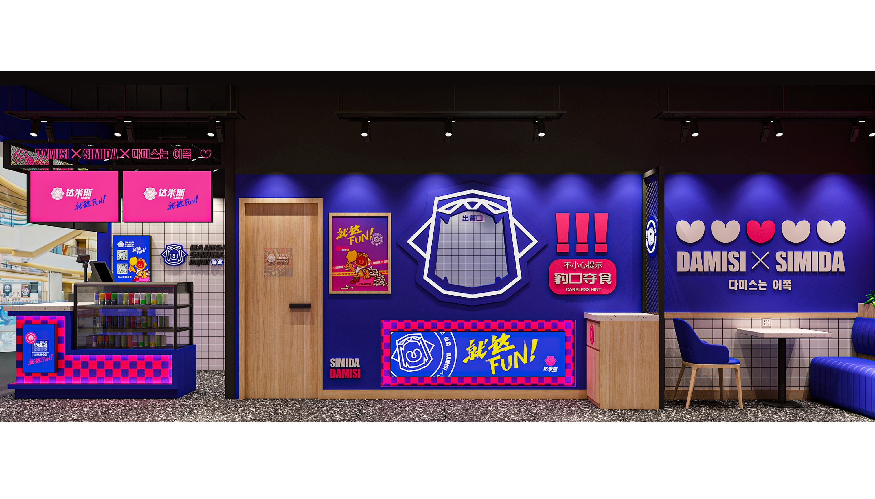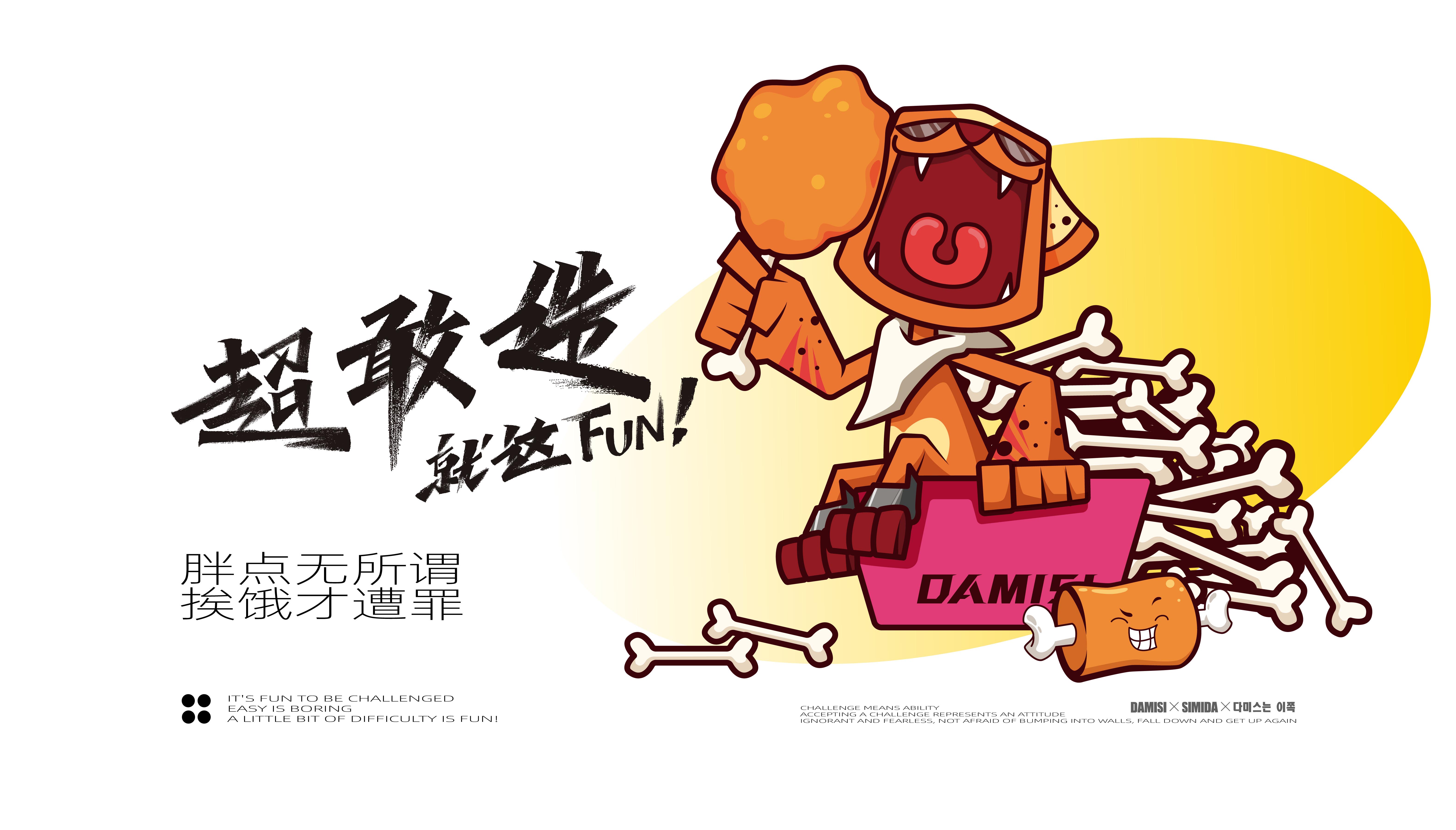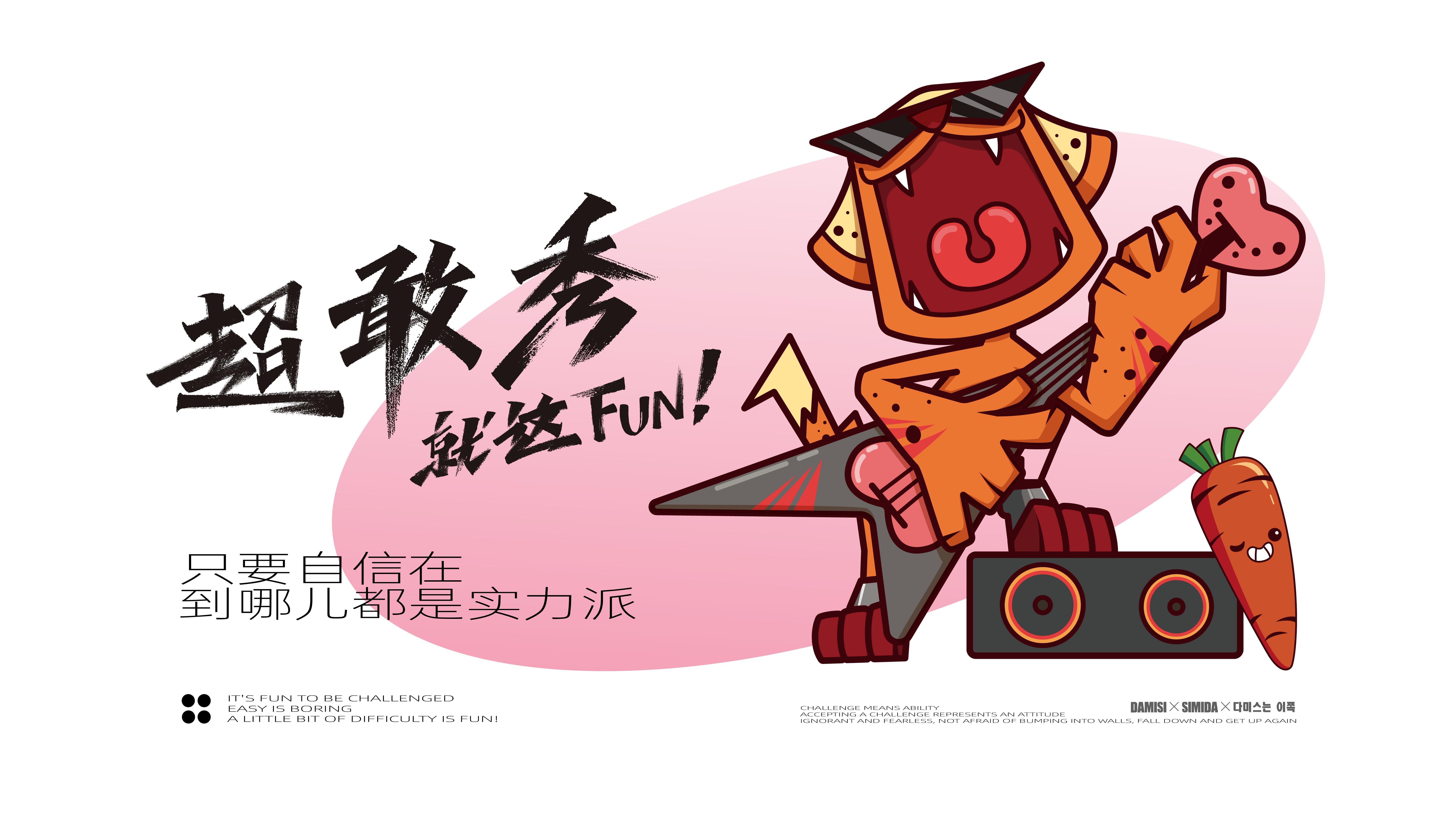 品牌的最總目的就是讓產(chǎn)品或服務(wù)自己在消費者心中有力量、有溫度,將大眾轉(zhuǎn)化為品牌的忠實信徒,除了產(chǎn)品過硬以外,品牌內(nèi)核能否引發(fā)共鳴和認(rèn)同才是關(guān)鍵,面向年輕群體尤為如此。所以達(dá)米斯的品牌精神核心就要激發(fā)年輕人的認(rèn)同感,當(dāng)下95-00后年輕群體是互聯(lián)網(wǎng)的原住民,他們樂于嘗試、敢于表達(dá),尤其是對于自我標(biāo)簽和態(tài)度上尤為熱衷,取悅自我、展現(xiàn)個性是他們永恒的話題,通過產(chǎn)品出發(fā),繽策將品牌核心定位于FUN,關(guān)聯(lián)主產(chǎn)品的同時,也包含熱愛、態(tài)度與樂趣的多重含義,將充滿反叛意味的鮮明風(fēng)格融入其中,結(jié)合受年輕人喜愛的IP形象共同打造品牌時尚、潮酷的調(diào)性,青春洋溢、無拘無束的搖滾豹張牙舞爪演繹著達(dá)米斯無所無懼的姿態(tài),張開的大嘴極富趣味性。同時將IP元素系統(tǒng)地植入物料及空阿金,對比突出、層次鮮明。從視覺層面、營銷賣點及品牌調(diào)性上全面與競品形成差異化表現(xiàn),使其脫穎而出。