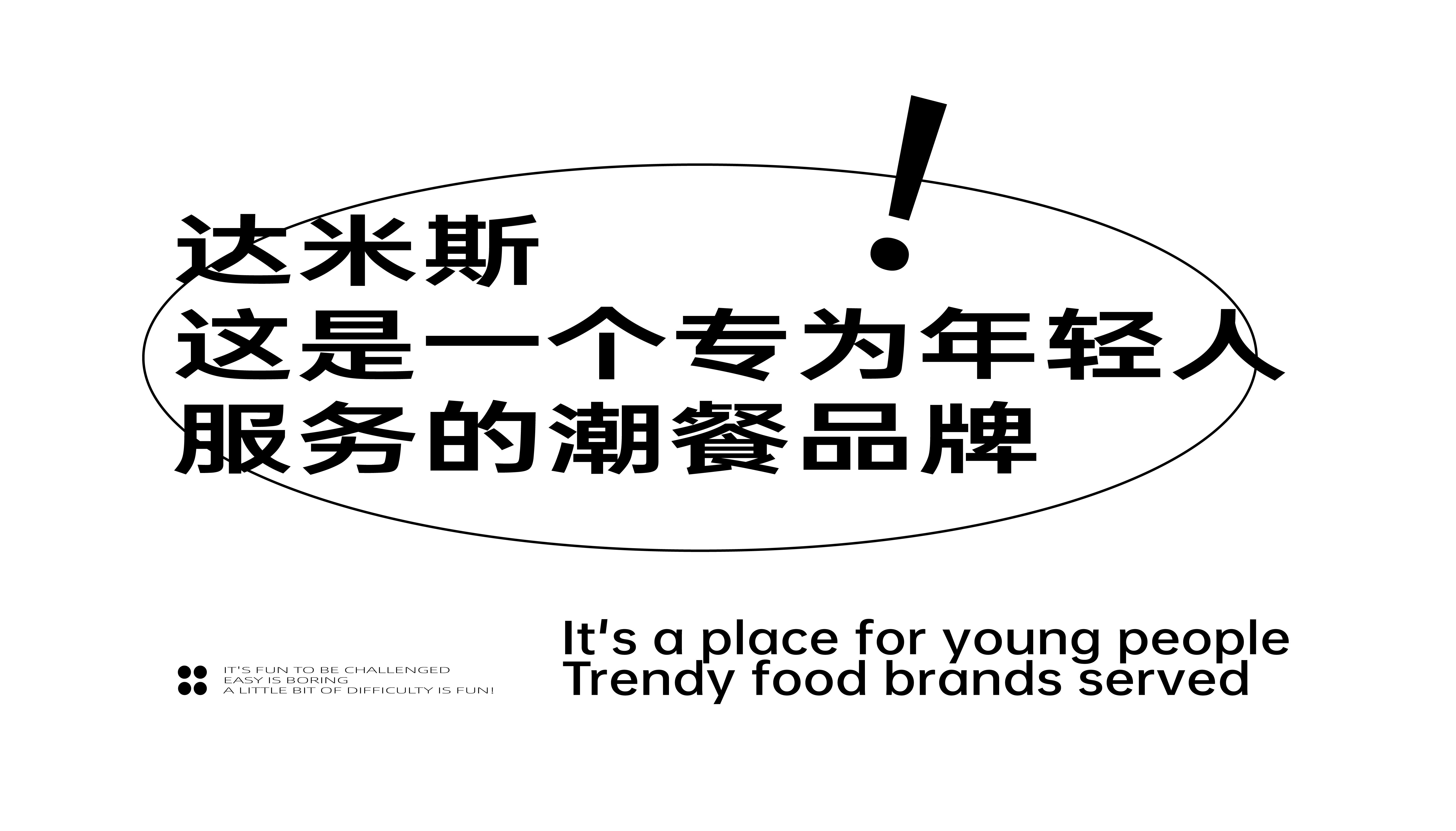企業(yè)積極在各階段消費人群中布局,努力拓展各類渠道,在艾可奇漢堡等品牌成熟后,想要打造面向青年群體的品牌達(dá)米斯,從大學(xué)食堂為入口,面向在校大學(xué)生群體,主營咖喱飯與炸雞等綜合性快餐。但以往品牌面向的客群多以中小學(xué)為主,面對年輕人客群缺乏了解,如何打造能吸引年輕人并讓其認(rèn)同的品牌成了企業(yè)不得不面對的棘手難題,企業(yè)希望繽策為其在品牌層面出謀劃策,并設(shè)計一套完備的可落地的系統(tǒng)解決方案。