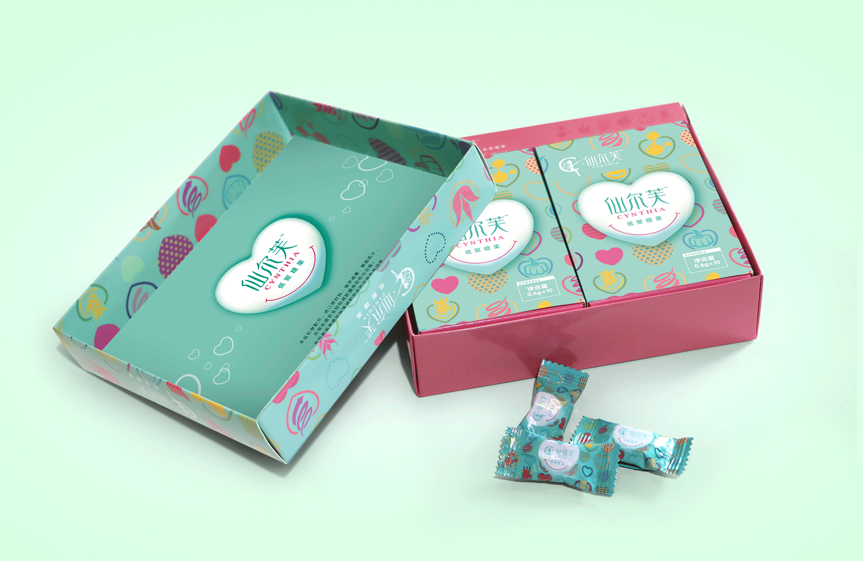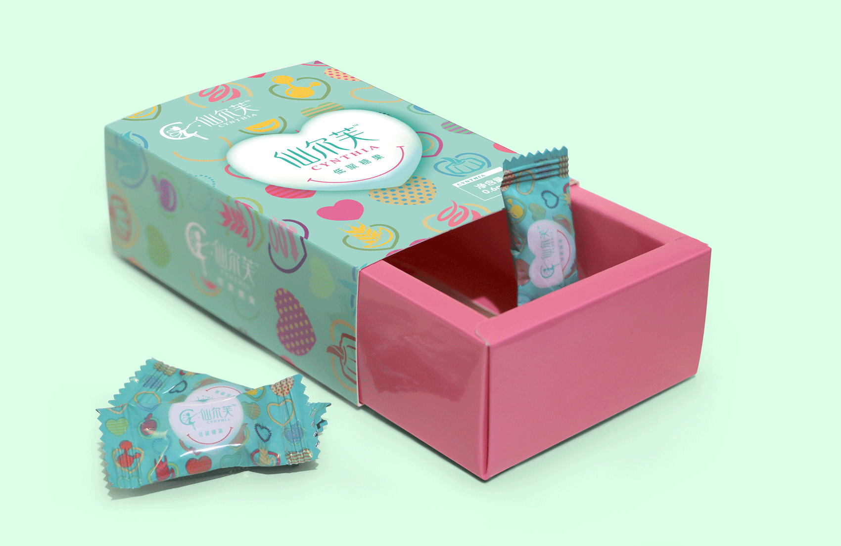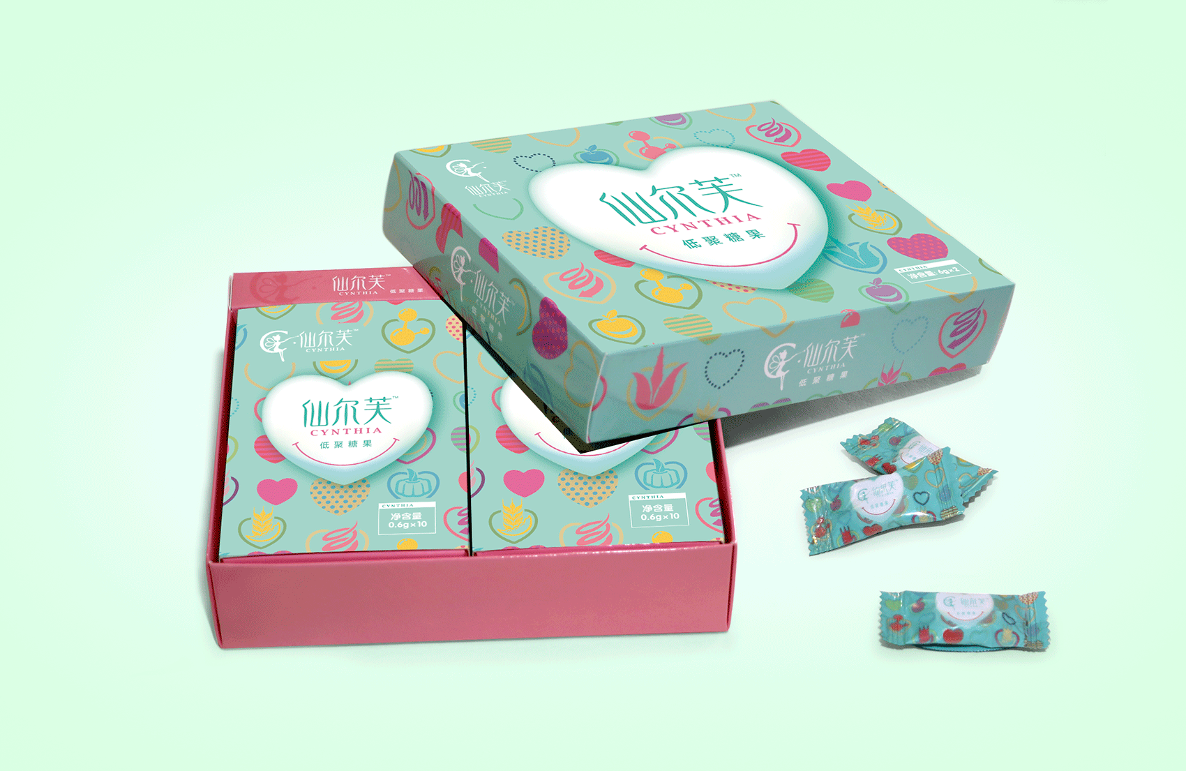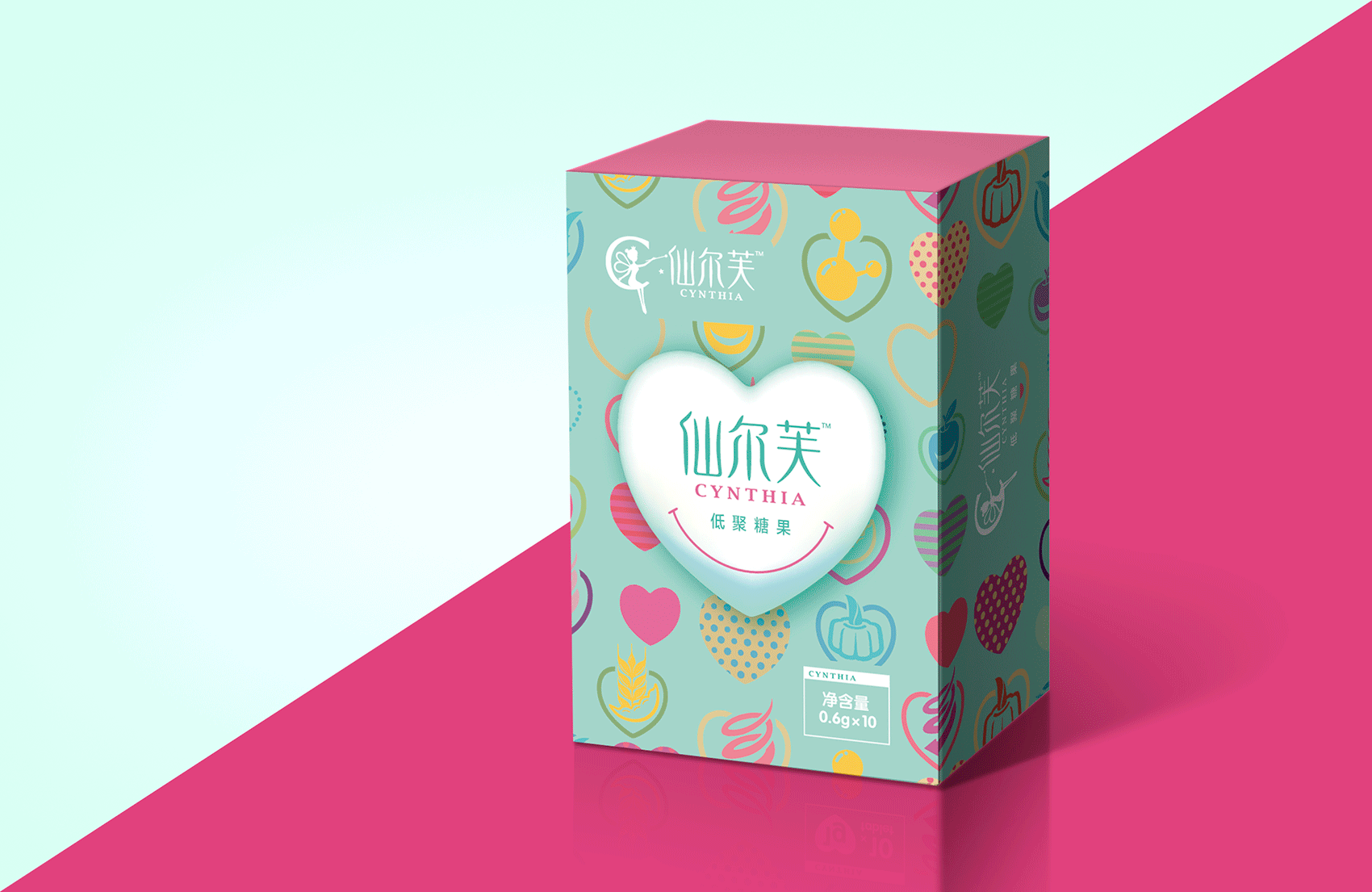 作為策劃創意方,自然是用全新的方式表述類似的內容,爭取消費者的共鳴。這就像一道考題,擺在繽策面前,如何在已形成趨勢的規律面前異軍突起?對,是糖果,形態是糖果的減肥產品,是孩子都愛吃的,是給每一位瘦身的女性準備的。仙兒芙就是使這種減肥產品的過程變得輕松而簡單。仙兒芙是本品的中文音譯名稱,其英文品牌名稱為“Cynthia”,是希臘神話中月亮女神的英譯名,她司掌光明,代表著神秘而優雅的黑夜,這與現代女神追求的“高冷女神范”有了100%的契合度,創意應運而生。消費者對到底期盼自己成為高冷女神,還是清新可愛的甜心?這完全取決于她們的年齡,也就是產品的市場定位。月亮女神的糖果(Cynthia's candy),18~40歲的適用人群,焦點無疑將鎖定于可愛的“甜心(candy)”之上。仙爾芙產品包裝,是全面表達產品創意的自媒體。想表達一種給人輕松的糖果,那就應該有一個糖果的樣子,清新明快的用色與設計風格。