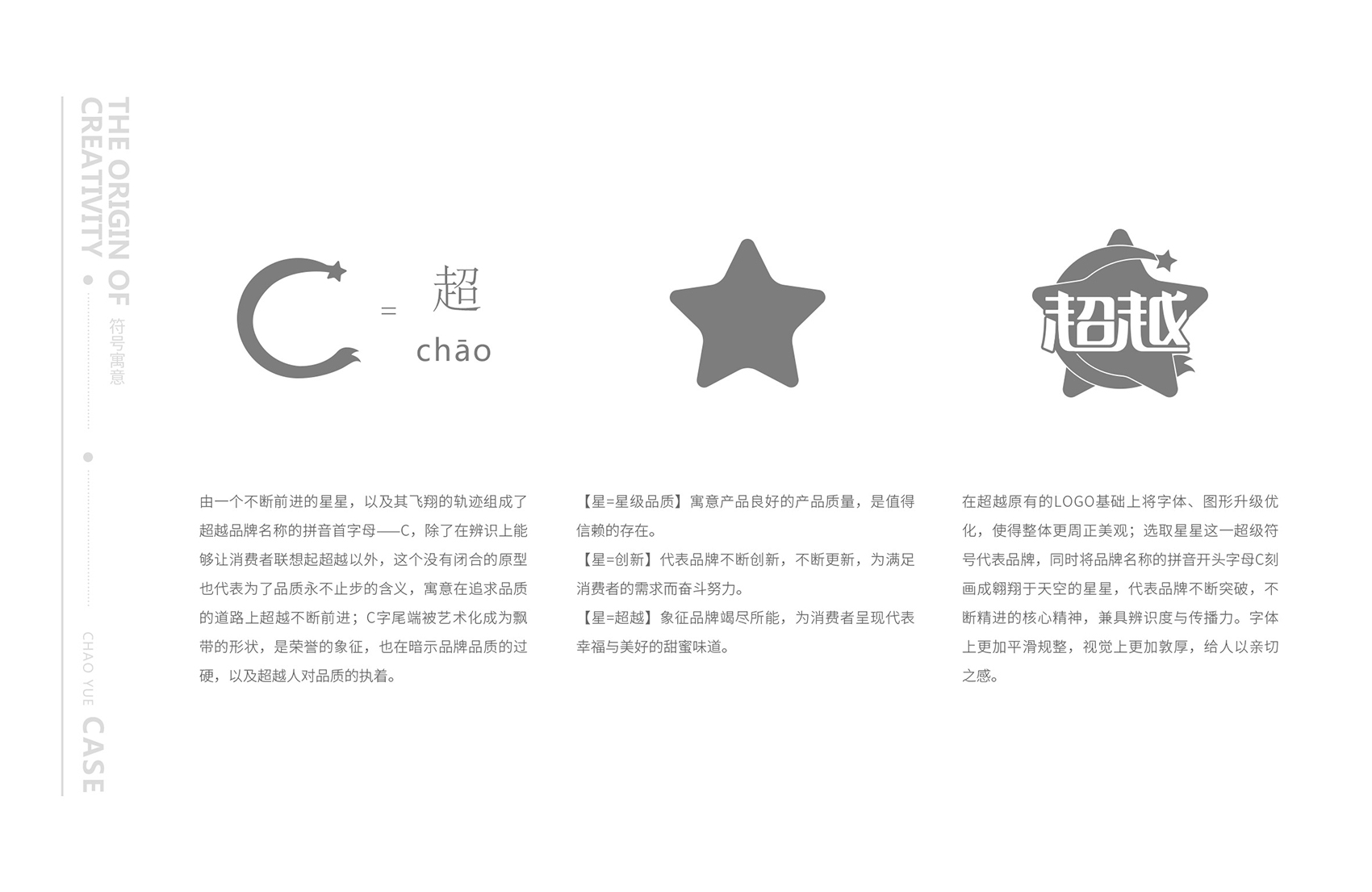 由于品牌原有logo在企業長期經營中,在消費者與經銷商心中留下了已有的印象,為了保存原有的辨識度,繽策在原有的logo基礎上將字體、圖形升級優化,使得整體更周正美觀;選取星星這一超級符號代表品牌,同時將品牌名稱的拼音開頭字母C刻畫成翱翔于天空的星星,代表品牌不斷突破,不斷精進的核心精神,兼具辨識度與傳播力。字體上更加平滑規整,視覺上更加敦厚,給人以親切之感。
