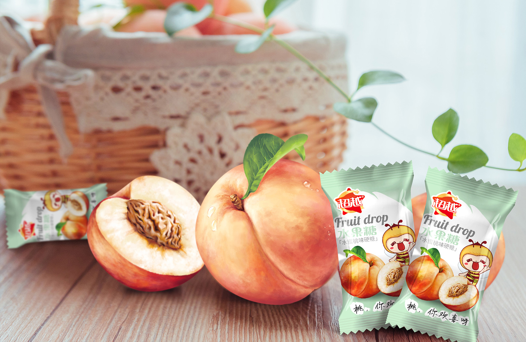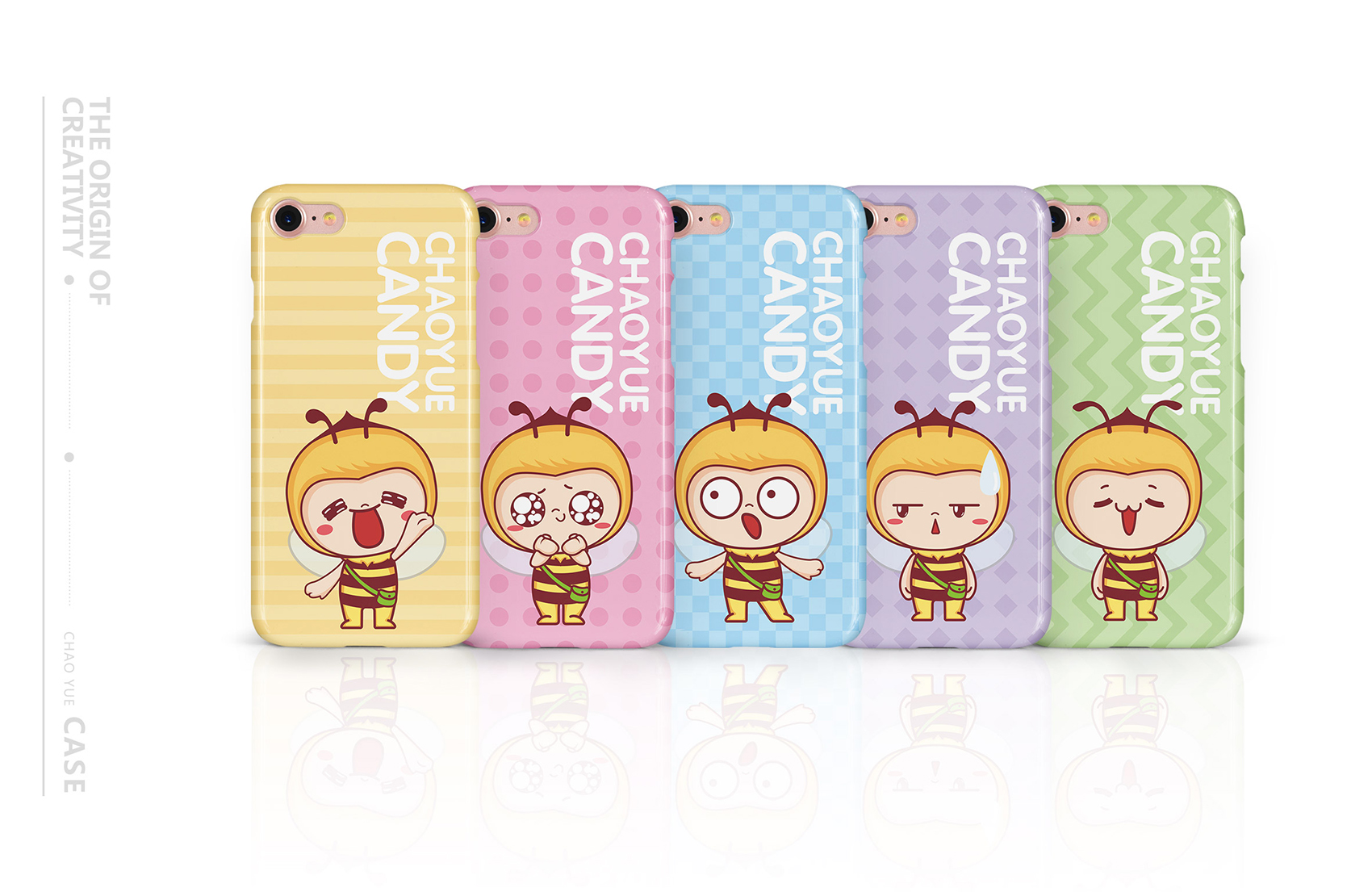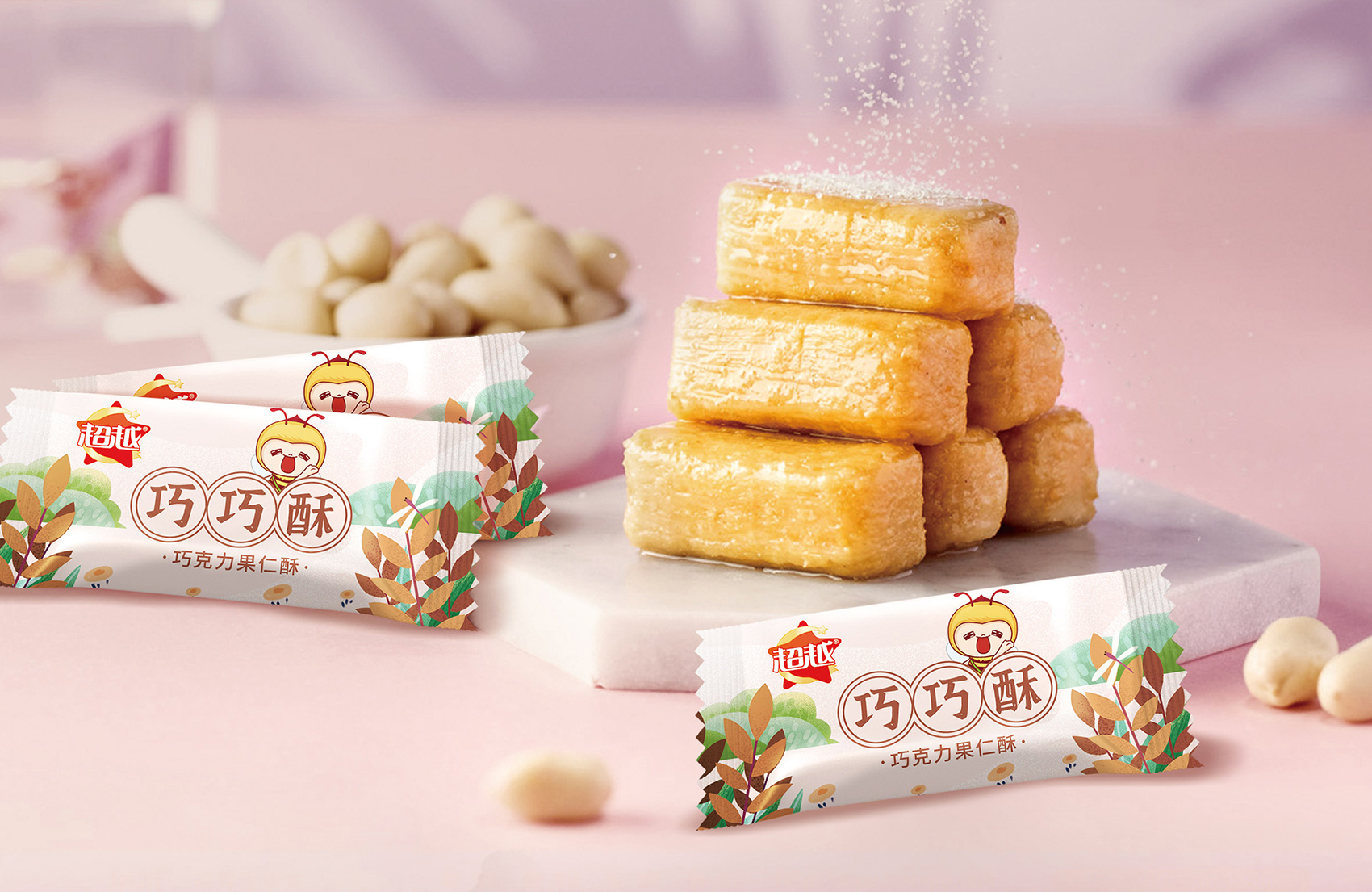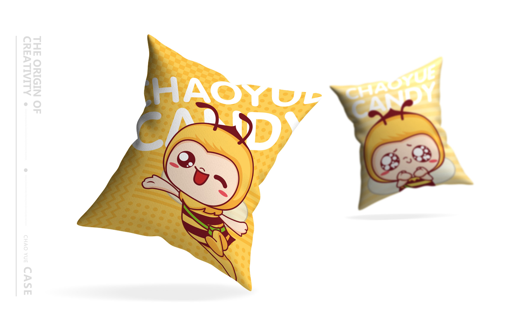 品牌主營的老式糖果在目標消費者新中式過去艱苦歲月的一絲絲幸福,而超越糖果的使命與最宗目的是為廣大消費者創造美味,體驗幸福,正如蜜蜂在消費者心中是勤勞、靈動的象征,一看到蜜蜂會下意識想到蜂蜜,進而聯想到糖果的甜蜜與芬芳。結合創始人至今人就在生產崗位上辛勤工作,這份堅守正是超越所代表的的深厚品牌文化的體現,所以繽策在眾多蘊藏著文化原力的富豪中選擇了蜜蜂的形象,加之一束花處理,讓形象更符合時下年輕人的審美,賦予了IP活潑可愛,軟萌逗趣的性格特征,有效的拉近與消費者之間的距離,具象化品牌文化與品牌精神,讓消費者能夠一眼辨認出品牌,便于記憶與傳播。