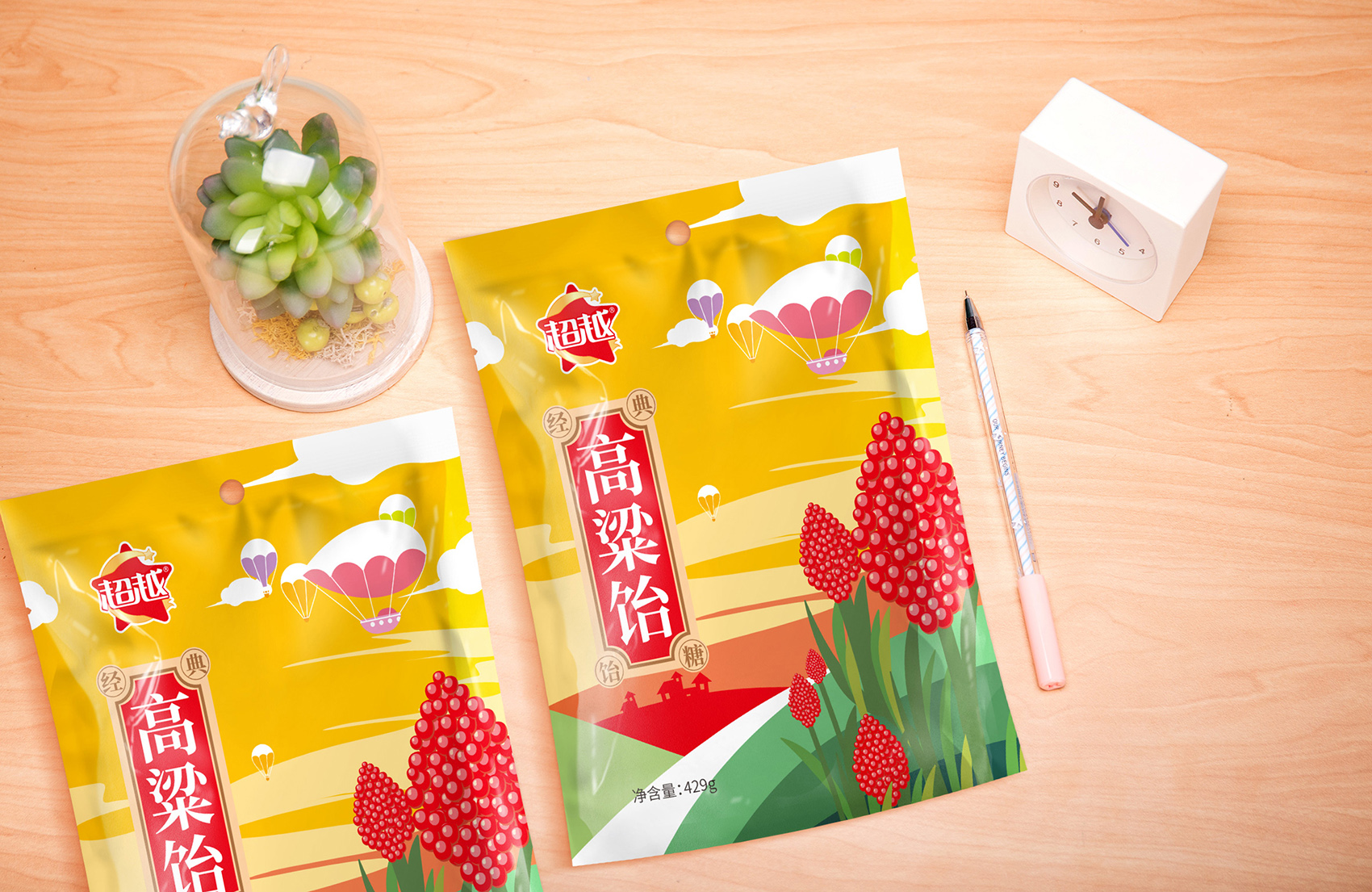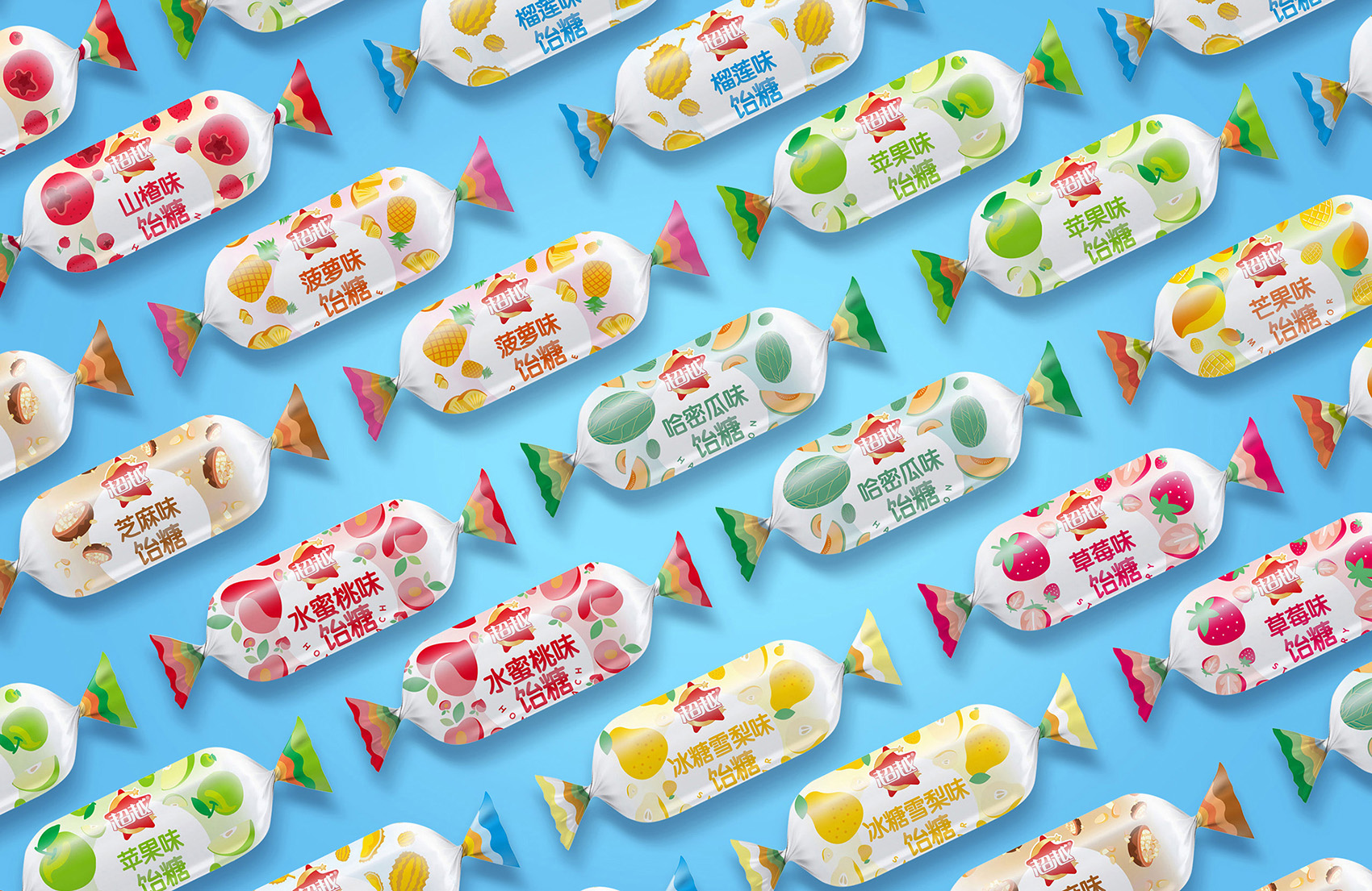 隨著消費群體的更迭交替,新一代消費者的消費觀念與上一代物質貧乏的群體迥然不同,上一代消費者更注重產品本身的價格、質量,忽視的是品牌與體驗;而生活在信息化多元時代的年輕群體,消費意愿強,敢于嘗鮮,在挑選產品時以品牌為參考進行購買,并且對于滿足自身愉悅的小額消費更為看中其精神層面是否與自身相互契合,無疑也就對品牌的要求提出更高的標準。零散的、不具備系統性的品牌無法承載更高的發展目標,會嚴重阻礙品牌持續發展。在同質化的散裝糖果市場競爭中,除了外包裝的視覺效果,品牌整體的完備性與調性才是讓消費者在浩如煙海的競品中記住辨識品牌最有效的途徑,通過大量市場調研,多輪頭腦風暴的研討,經過對市場與消費群體的仔細研究,繽策為超越糖果構筑品牌專屬IP,以多樣化的包裝風格,喚起消費者的認同感;將勤勞真誠,暖心甜蜜的品牌專屬精神融入其中,重塑品牌標志,以多樣化的風格結合品牌IP全方位垂直化融入包裝,打造出超越糖果的新面貌。