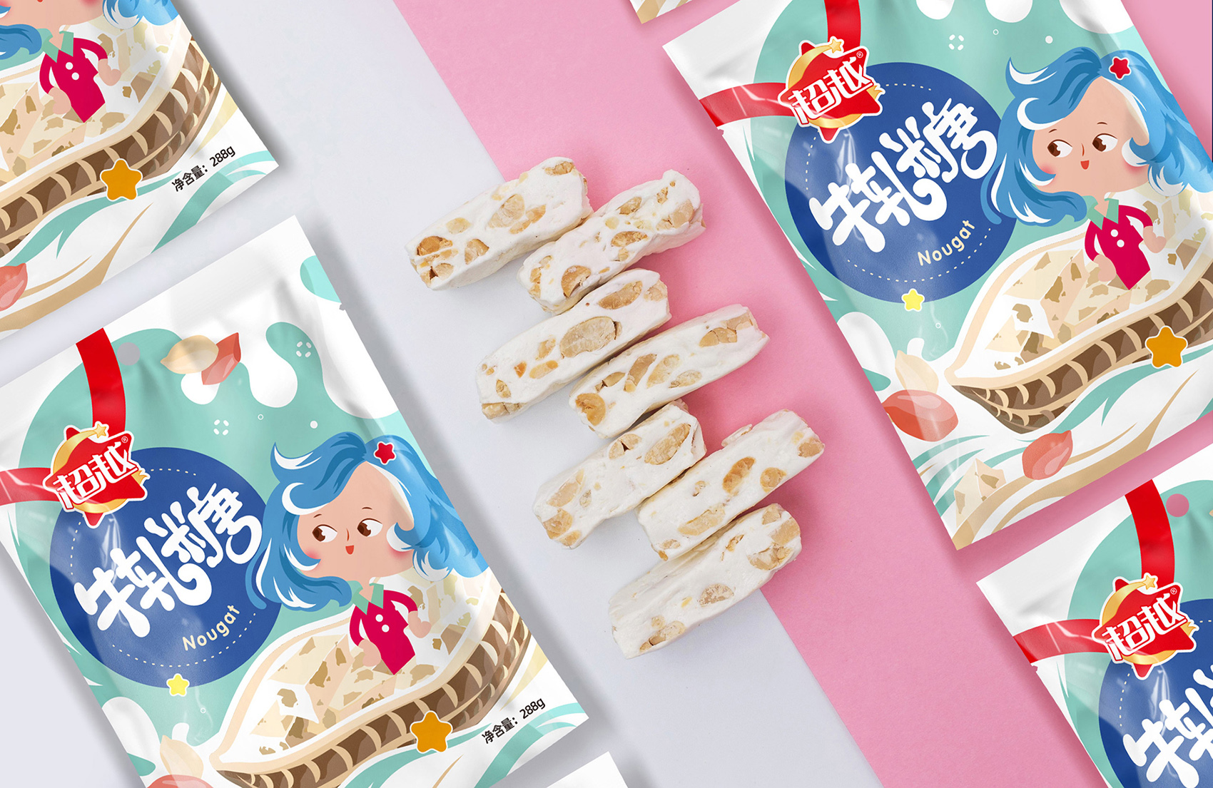 散裝糖果所屬的快消品市場在消費者親自品嘗之前,視覺包裝能夠直接左右購買意愿,由于迭代更新速度過快以及平鋪的擺放方式,讓消費者眼花繚亂,單純的絢麗包裝并不能幫助企業在眾多競品中脫穎而出,也無法營造穩固的品牌印象。如何讓超越品牌在被消費者認知的同時能夠記住呢?繽策想到了建立IP形象,IP形象自成體系,具有非常鮮明的辨識度,可以散發魅力、可以吸附粉絲、商業轉化。品牌IP化最大價值在于:通過挖掘品牌的人性,賦予性格、文化、價值觀更像一個有血有肉有靈魂的人,通過持續的內容生產,吸引用戶參與,進而使用戶產生精神共鳴,在與用戶產生關系過程中給予情懷和溫度、最終實現商業價值。