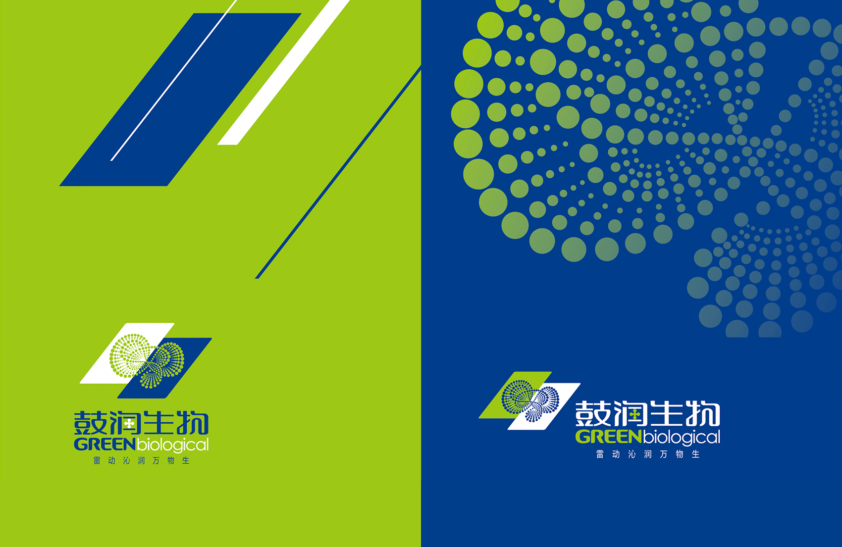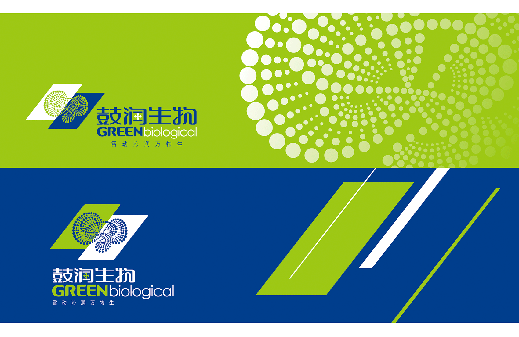 以綠色與藍(lán)色色塊為主體,組合成霹靂形狀,將力與美完美地結(jié)合一處,以表現(xiàn)“鼓潤”品牌含義,即雷鳴之聲環(huán)形繼續(xù)了無限能量的生命。圓點(diǎn)紋飾,如明珠般鋪散而出,由大到小漸進(jìn)式排列,呈現(xiàn)出莫比烏斯環(huán)形。體現(xiàn)沁入大地滋養(yǎng)生命,繽紛璀璨的視覺效果,是鼓潤對生命視如珍寶、充滿感恩的經(jīng)營態(tài)度,與無限發(fā)展的愿景。并形成品牌標(biāo)準(zhǔn)色、輔助色,品牌專用中、英文字體,輔助圖形等VIS(品牌形象視覺識別系統(tǒng))基礎(chǔ)元素。