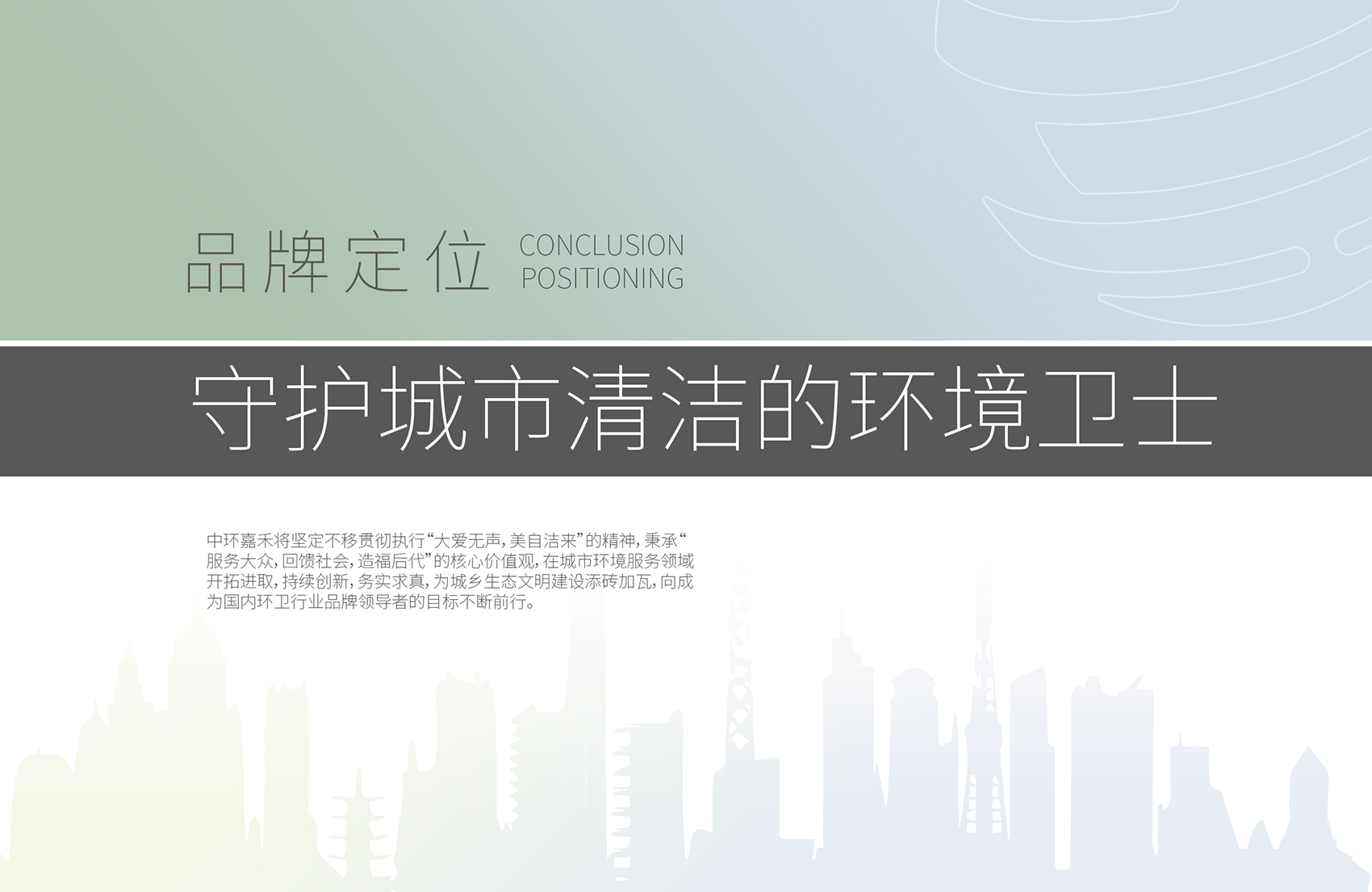 環(huán)衛(wèi)企業(yè)所提供的商品實(shí)際上是清潔城市等業(yè)務(wù)的服務(wù),重點(diǎn)在于讓普通消費(fèi)者能夠直觀的理解中環(huán)嘉禾所代表的環(huán)衛(wèi)服務(wù),并通過環(huán)衛(wèi)服務(wù)這一產(chǎn)品所帶來的的清潔屬性,與最后的利益——清潔美麗環(huán)境和衍生的美好城市生活相關(guān)聯(lián),通過一個(gè)大眾熟悉的符號——衛(wèi)士詮釋出來,幫助品牌進(jìn)行后續(xù)的推廣宣傳。